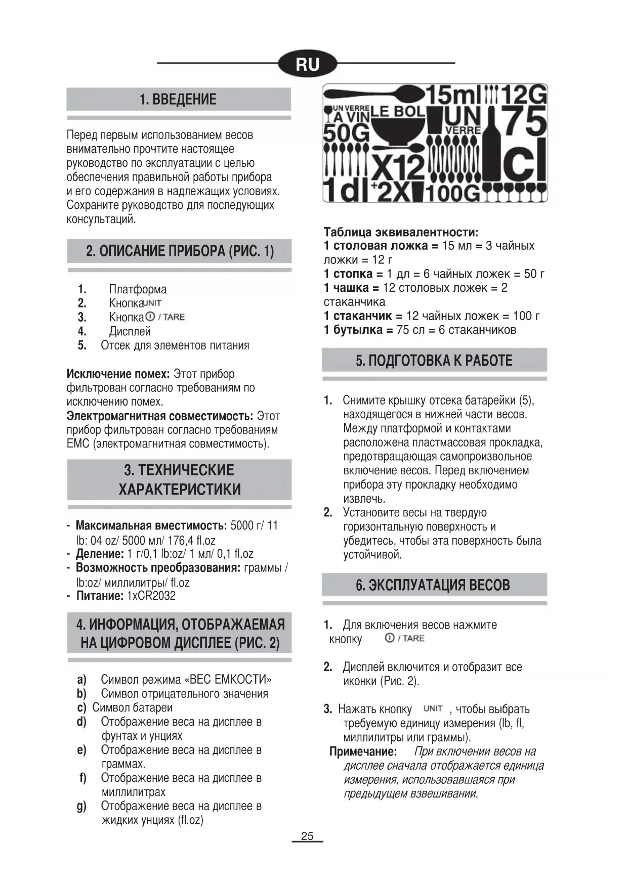 - Деление: 1 г/0,1 lb:oz/ 1 мл/ 0,1 fl.oz