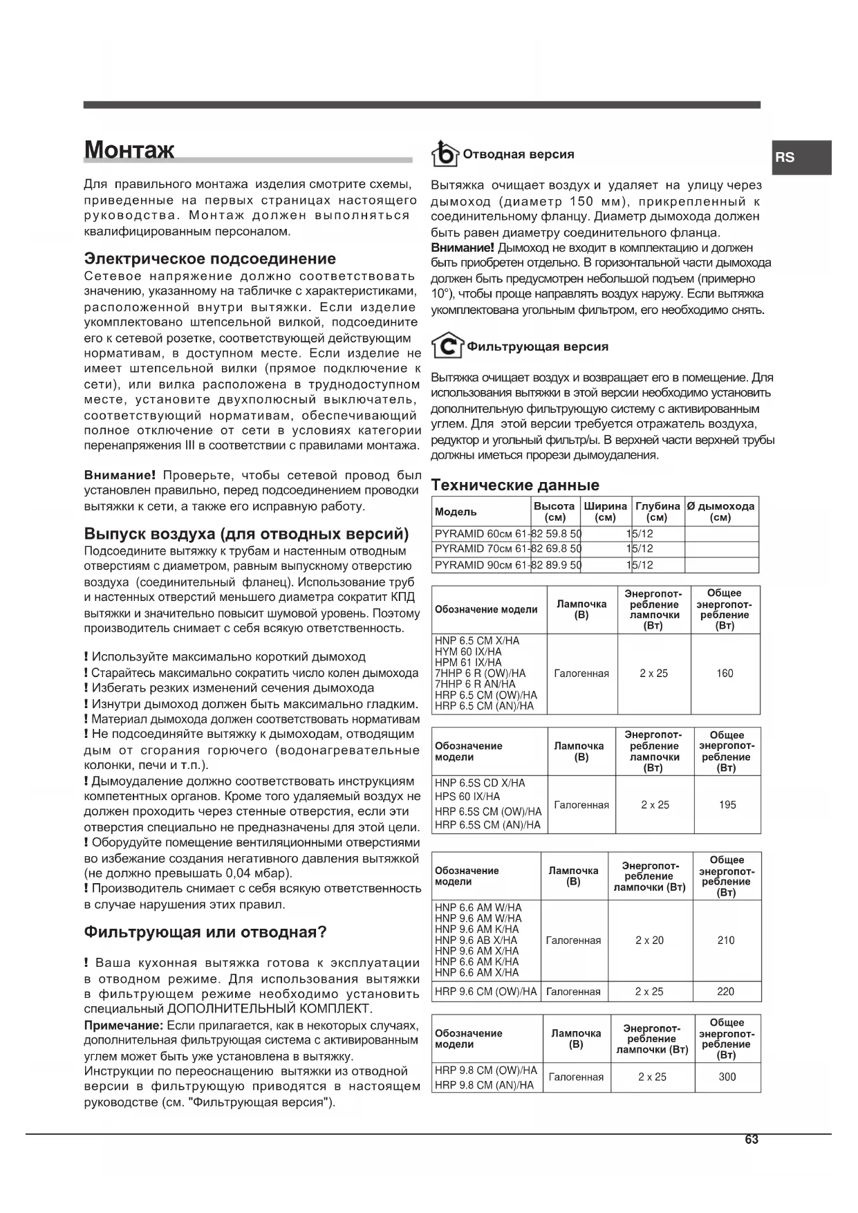 Ø дымохода PYRAMID 60см 61-82 59.8 50 15/12PYRAMID 70см 61-82 69.8 50 15/12PYRAMID 90см 61-82 89.9 50 15/12Обозначение моделиЛампочка Энергопот- ребление лампочки Общее энергопот- ребление HNP 6.5 CM X/HAHYM 60 IX/HAHPM 61 IX/HA7HHP 6 R (OW)/HA7HHP 6 R AN/HAHRP 6.5 CM (OW)/HAHRP 6.5 CM (AN)/HAГалогенная 2 x 25 160Обозначение моделиЛампочка Энергопот- ребление лампочки Общее энергопот- ребление HNP 6.5S CD X/HAHPS 60 IX/HAHRP 6.5S CM (OW)/HAHRP 6.5S CM (AN)/HAГалогенная 2 x 25 195Обозначение моделиЛампочка Энергопот- ребление лампочки (Вт)Общее энергопот- ребление HNP 6.6 AM W/HAHNP 9.6 AM W/HAHNP 9.6 AM K/HAHNP 9.6 AB X/HAHNP 9.6 AM X/HAHNP 6.6 AM K/HAHNP 6.6 AM X/HAГалогенная 2 x 20 210 HRP 9.6 CM (OW)/HA Галогенная 2 x 25 220 Обозначение моделиЛампочка Энергопот- ребление лампочки (Вт)Общее энергопот- ребление HRP 9.8 CM (OW)/HAHRP 9.8 CM (AN)/HAГалогенная 2 x 25 30064
