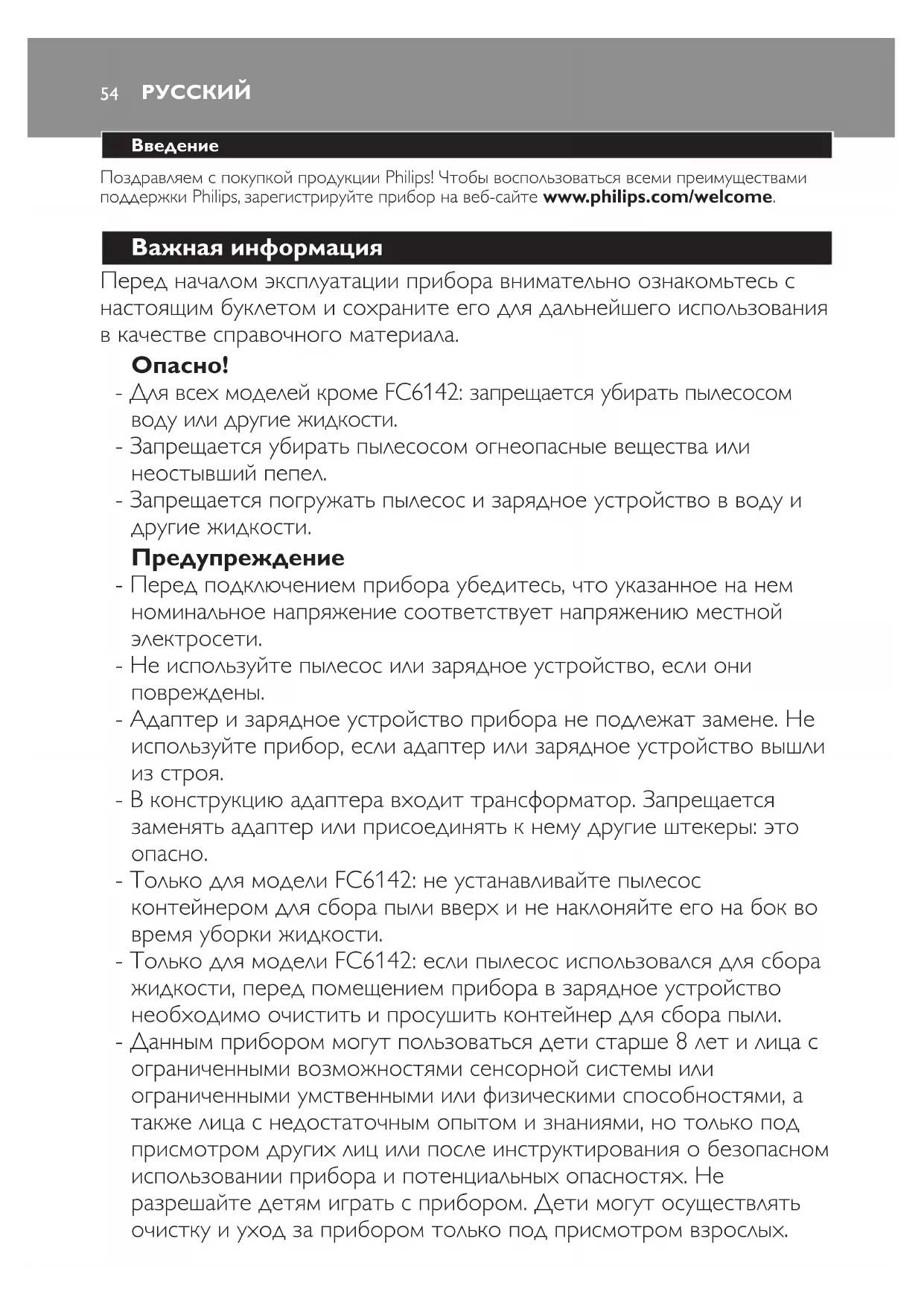 - Для всех моделей кроме FC6142: запрещается убирать пылесосом