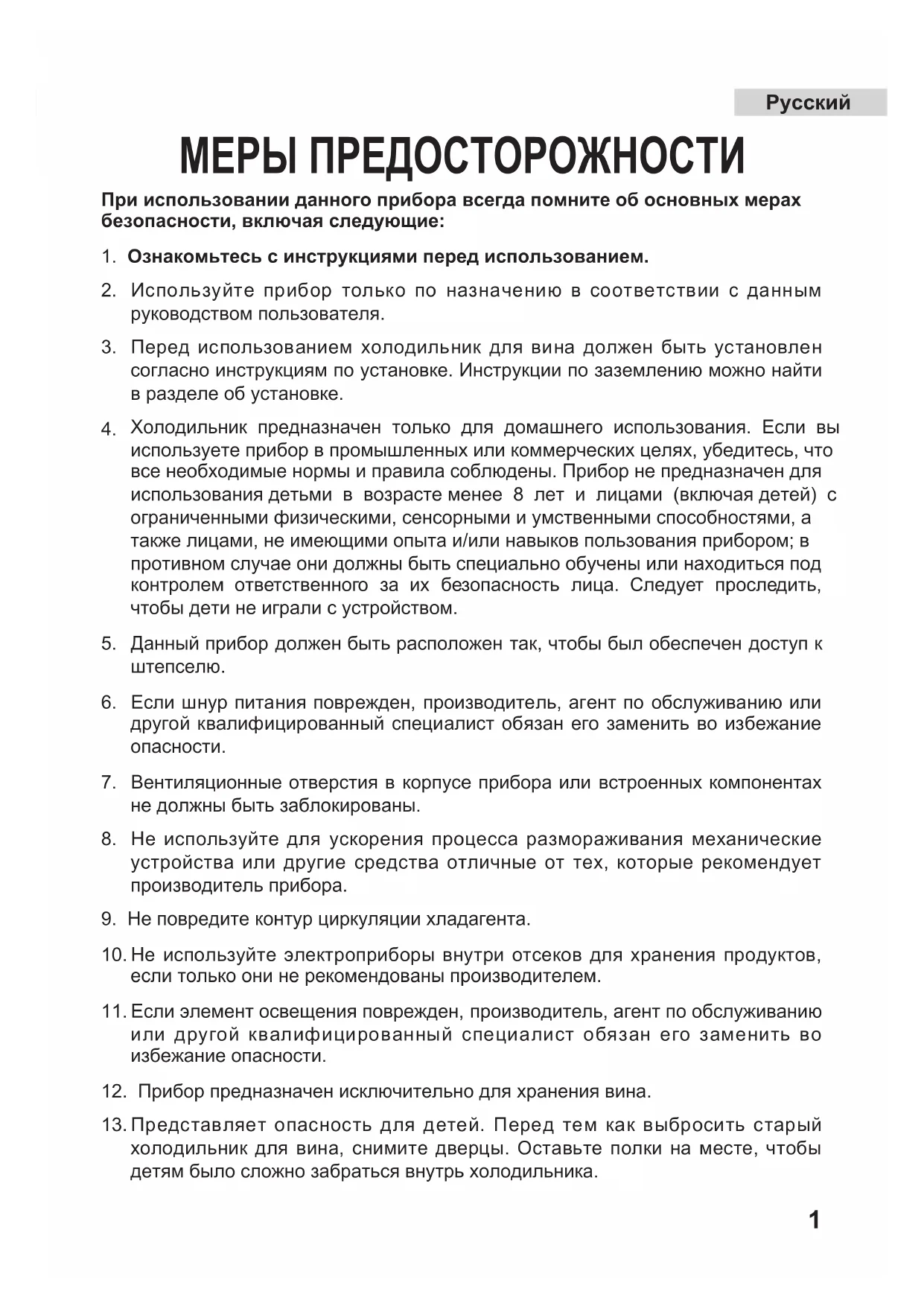 РусскийМЕРЫ ПРЕДОСТОРОЖНОСТИ