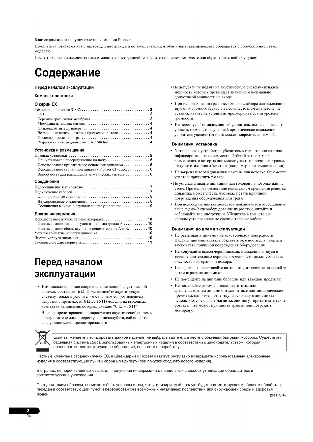 Скачайте инструкцию для вашего динамик в формате PDF бесплатно! Найдите своё руководство S8EXW - PIONEER и возьмите своё электронное устройство обратно в руки. На этой странице опубликованы все документы, необходимые для использования вашего устройства. S8EXW бренда PIONEER.