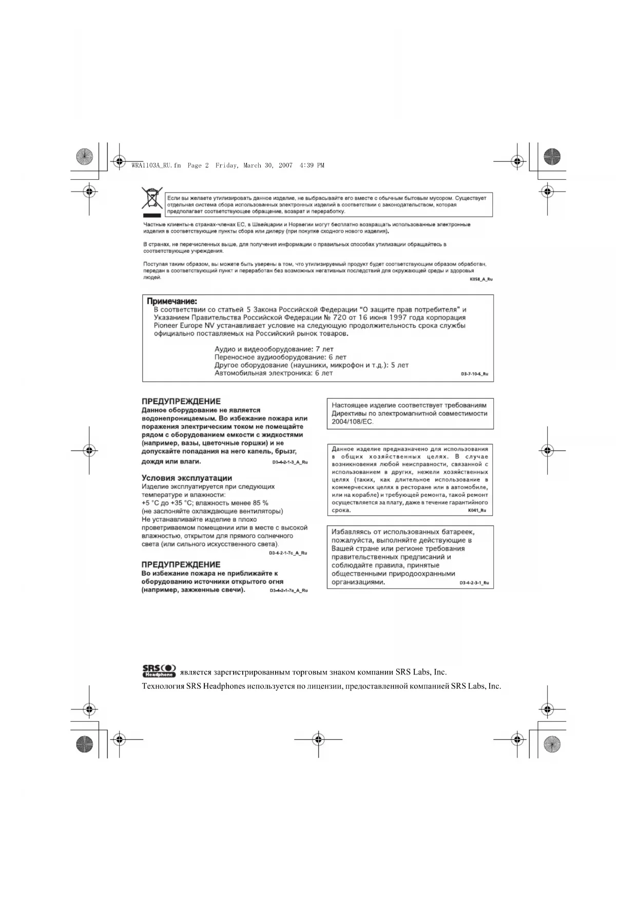WRA1103A_RU.fm Page 2 Friday, March 30, 2007 4:39 PM3