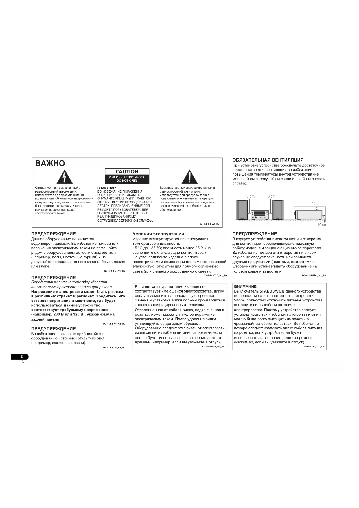 Ru 10 cm 10 cm10 cm10 cmTIMERВосклицательный знак, заключенный в равносторонний треугольник, используется для предупреждения пользователя о наличии в литературе, поставляемой в комплекте с изделием, важных указаний по работе с ним и обслуживанию.Символ молнии, заключенный в равносторонний треугольник, используется для предупреждения пользователя об «опасном напряжении» внутри корпуса изделия, которое может быть достаточно высоким и стать причиной поражения людей электрическим током.ВНИМАНИЕ:ВО ИЗБЕЖАНИЕ ПОРАЖЕНИЯ ЭЛЕКТРИЧЕСКИМ ТОКОМ НЕ СНИМАЙТЕ КРЫШКУ (ИЛИ ЗАДНЮЮ СТЕНКУ). ВНУТРИ НЕ СОДЕРЖАТСЯ ДЕАТЛИ, ПРЕДНАЗНАЧЕННЫЕ ДЛЯ РЕМОНТА ПОЛЬЗОВАТЕЛЕМ. ДЛЯ ОБСЛУЖИВАНИЯ ОБРАТИТЕСЬ К КВАЛИФИЦИРОВАННОМУ СОТРУДНИКУ СЕРВИСНОЙ СЛУЖБЫ. CAUTION RISK OF ELECTRIC SHOCKDO NOT OPEN BAЖHO D3-4-2-1-1_A1_Ru ПРЕДУПРЕЖДЕНИЕ