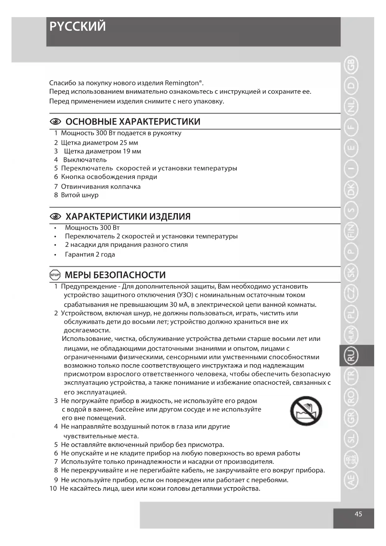 Спасибо за покупку нового изделия Remington®.