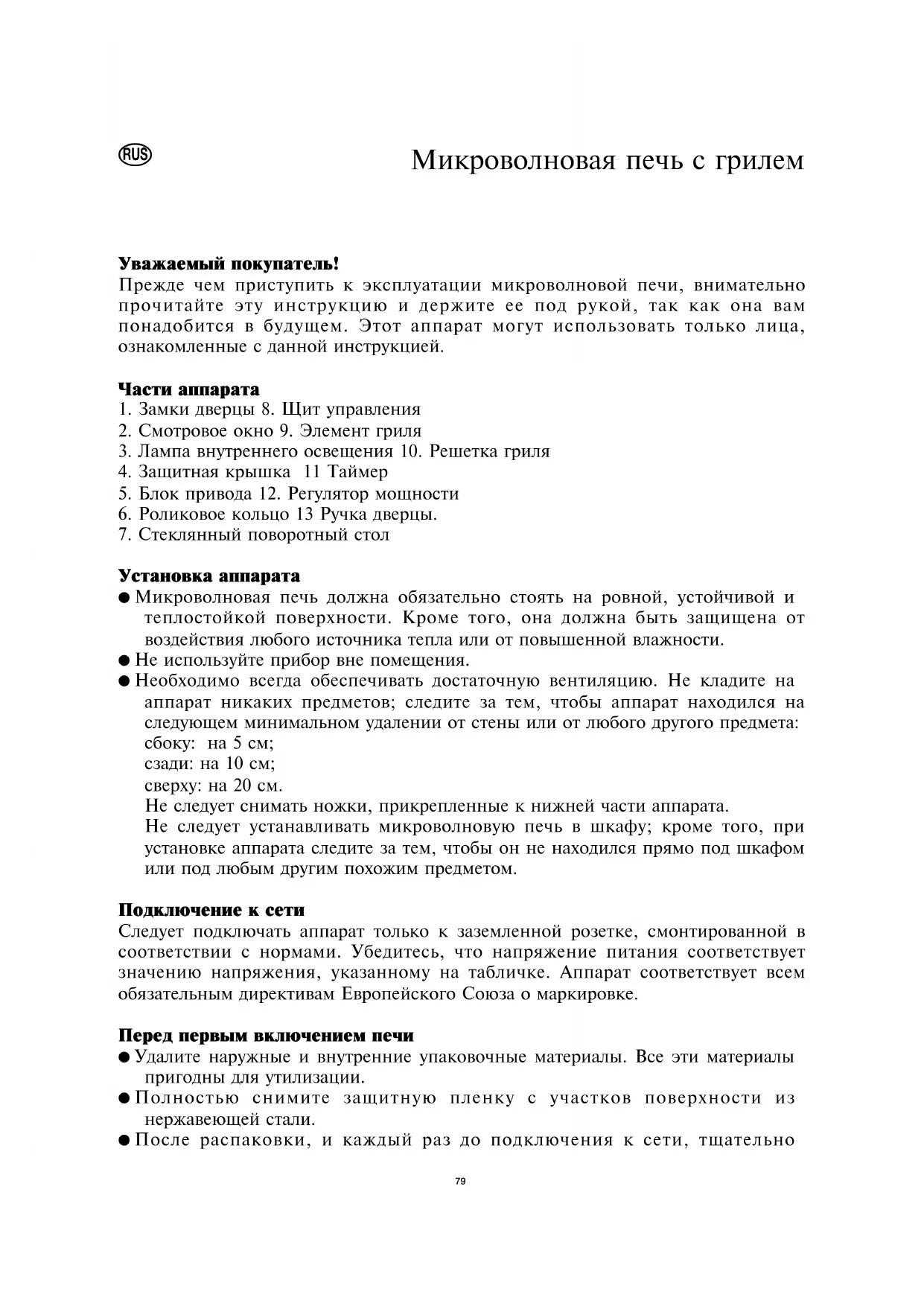 Прежде чем приступить к эксплуатации микроволновой печи, внимательно