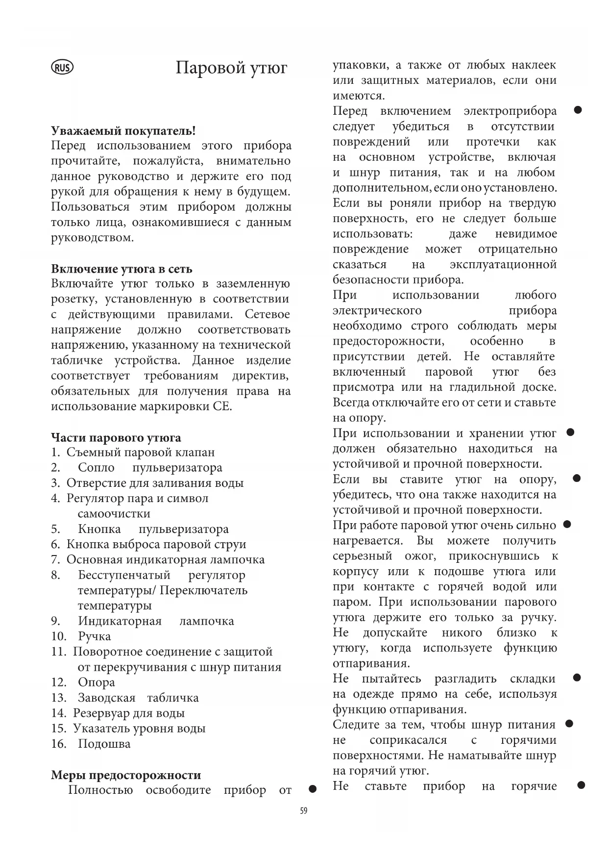 При использовании и хранении утюг z