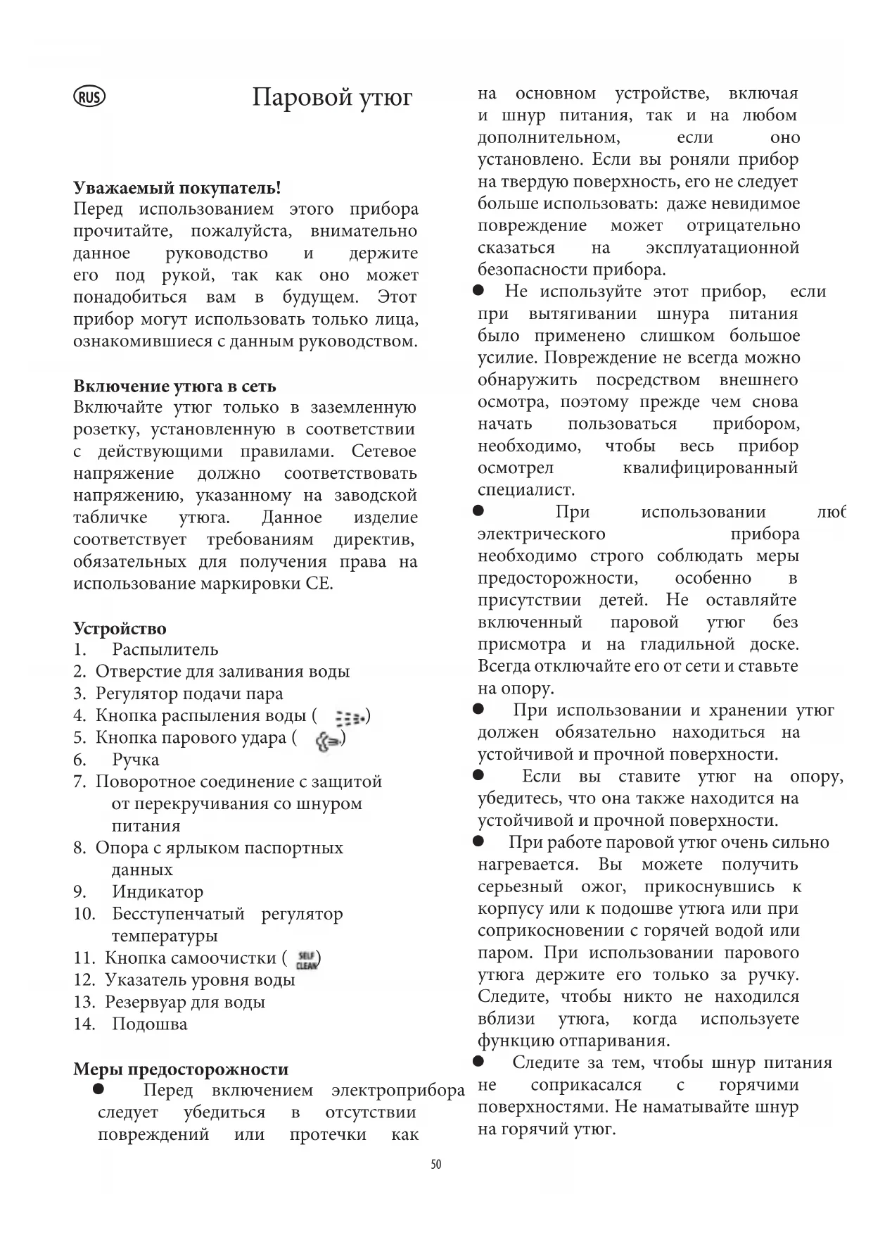RUS При глаженье всегда ставьте утюг на
