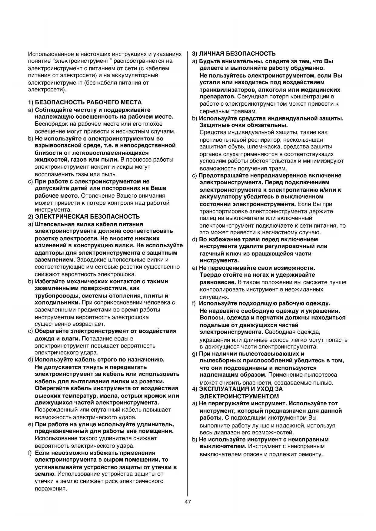 c) Оберегайтеэлектроинструментотвоздействия