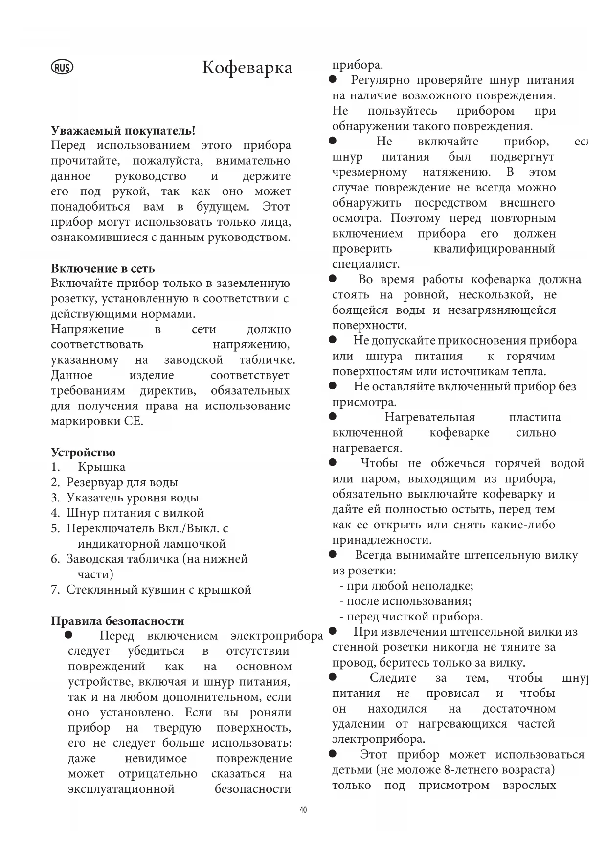 РУКОВОДСТВО ПОЛЬЗОВАТЕЛЯ KA 4213 SEVERIN