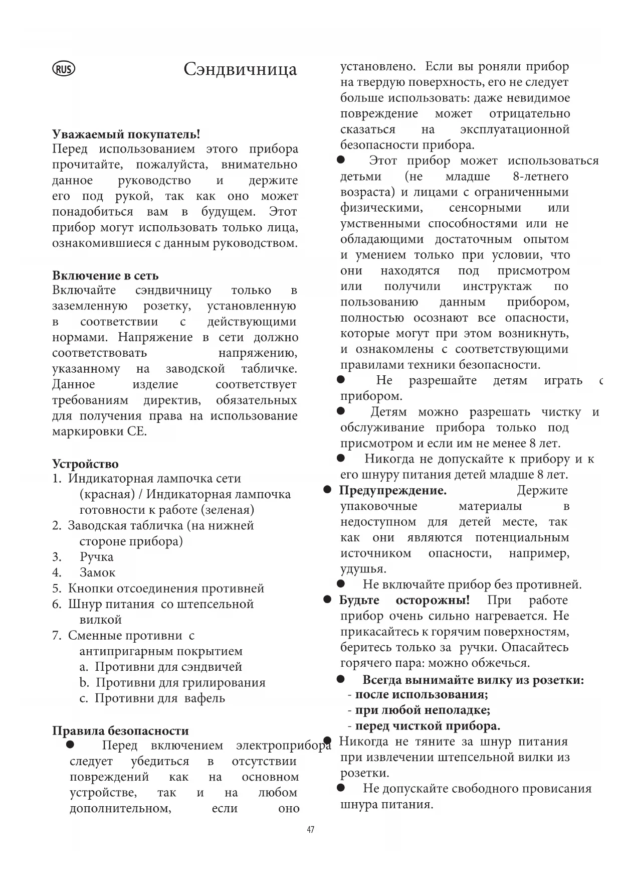 Включайте сэндвичницу только в