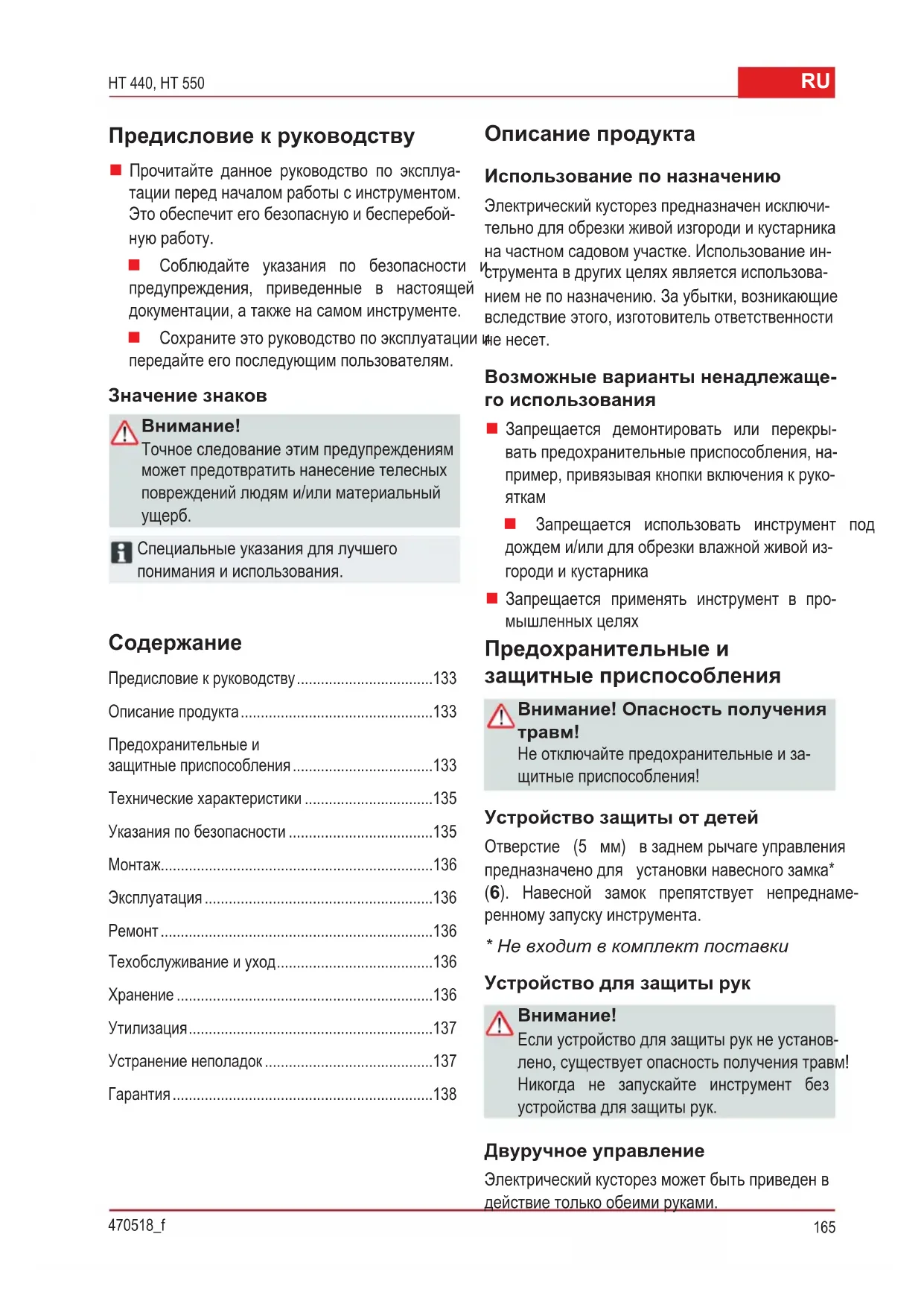РУКОВОДСТВО ПОЛЬЗОВАТЕЛЯ HT 550 AL-KO