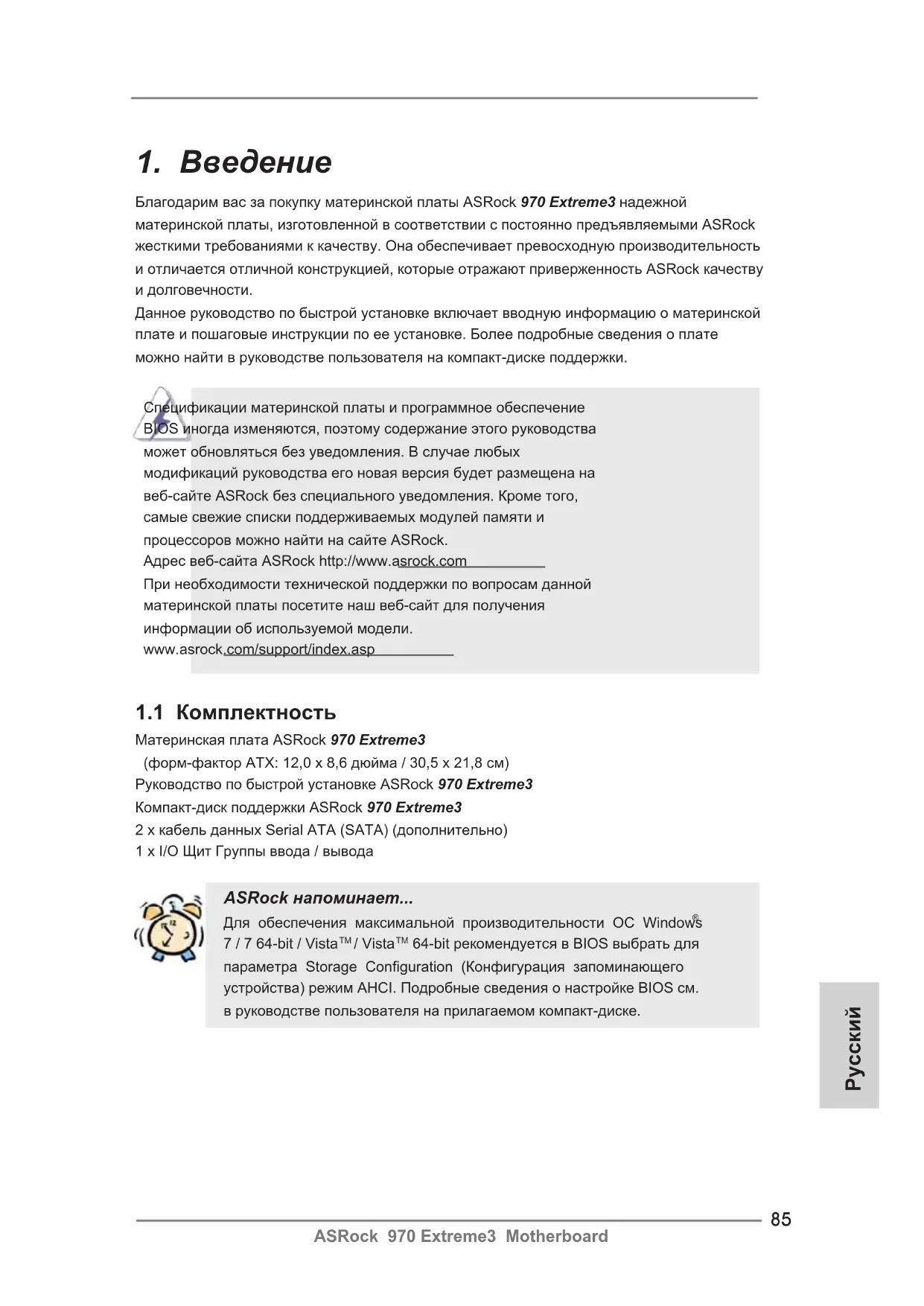 Благодарим вас за покупку материнской платы ASRock 970 Extreme3 надежной