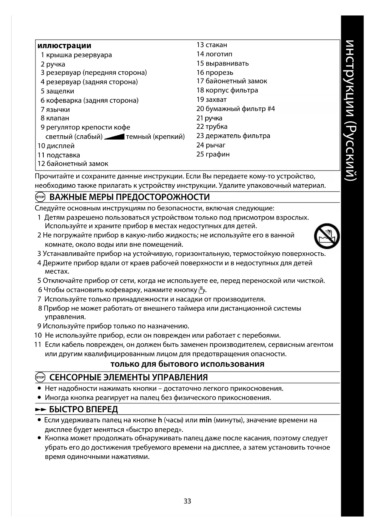 33 Регулярно удаляйте накипь. Используйте устройство для удаления накипи, подходящее