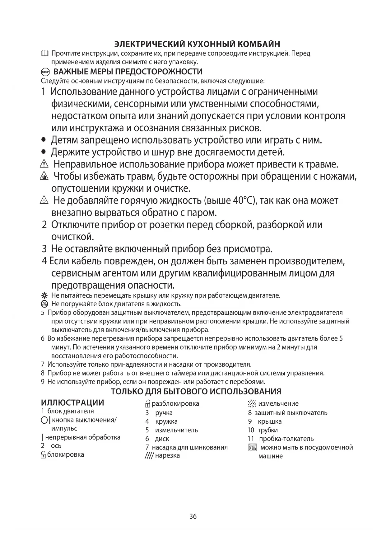 5 Прибор оборудован защитным выключателем, предотвращающим включение электродвигателя