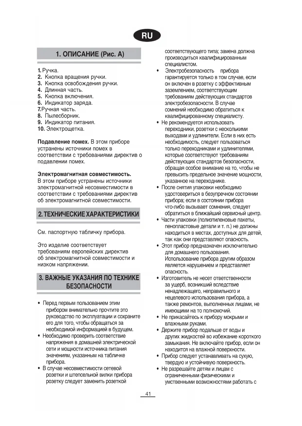 • Электробезопасность прибора