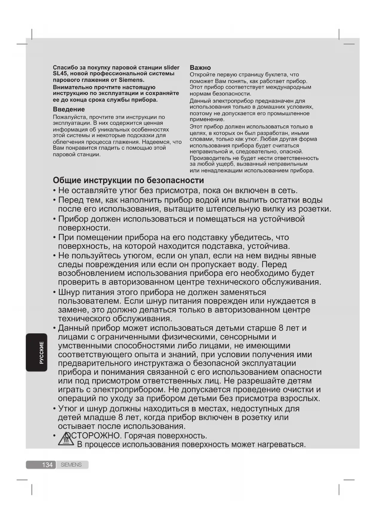 TS45XTRM24 - утюг SIEMENS - Бесплатное руководство пользователя