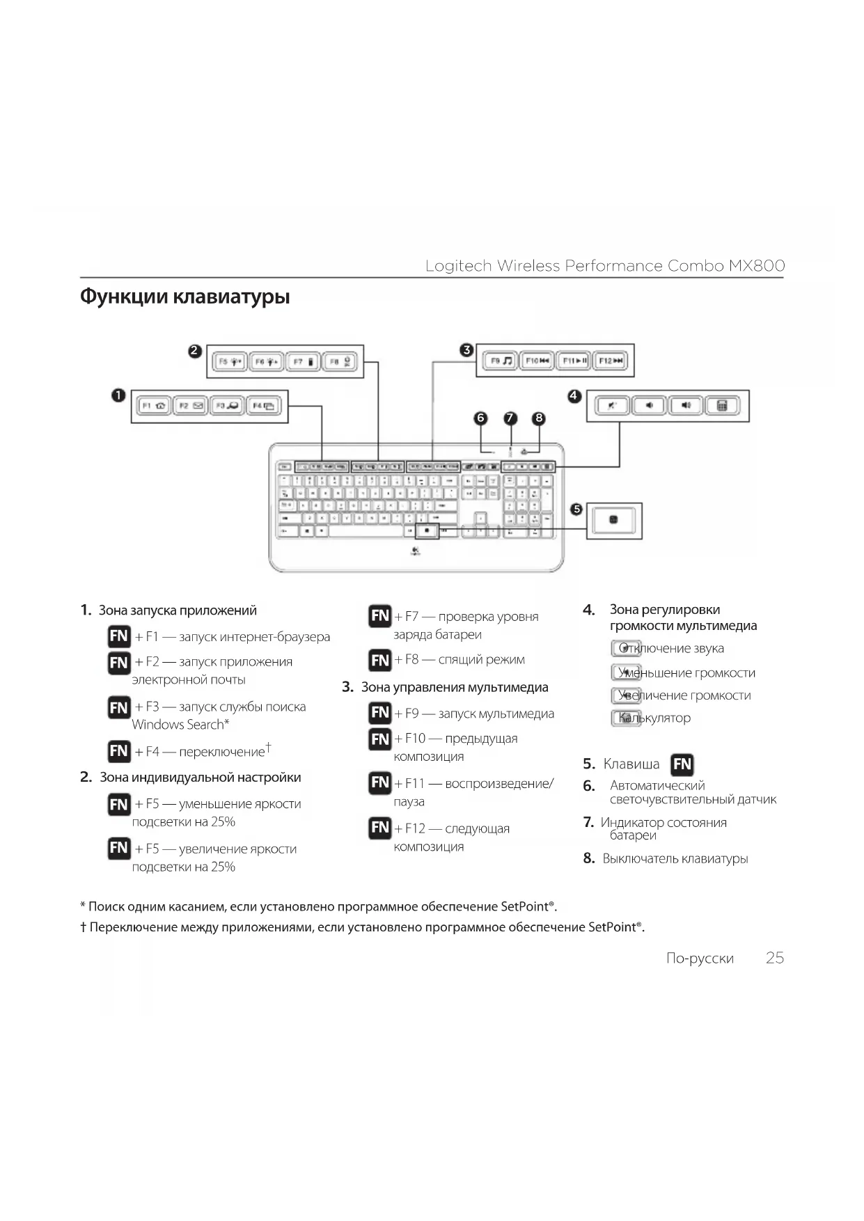 † Переключение между приложениями, если установлено программное обеспечение SetPoint®.
