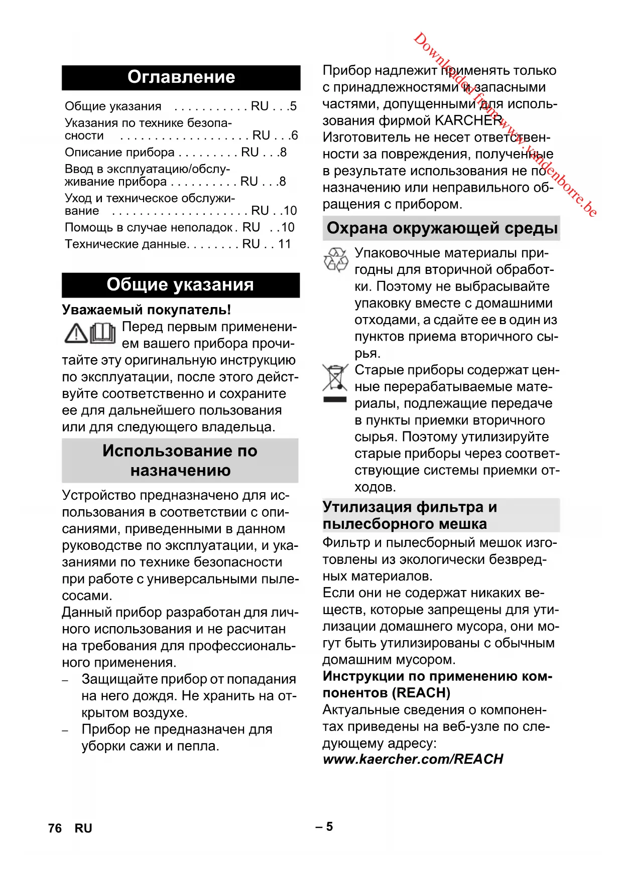 76 RU Downloaded from www.vandenborre.be– 6