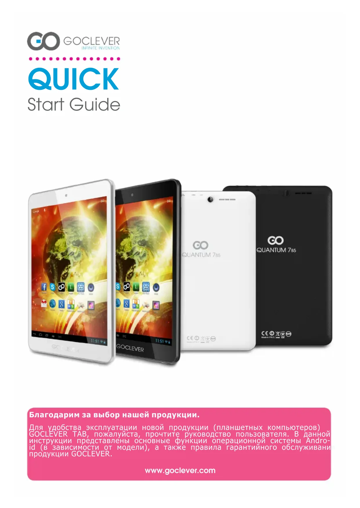 РУКОВОДСТВО ПОЛЬЗОВАТЕЛЯ Quantum 785 GOCLEVER