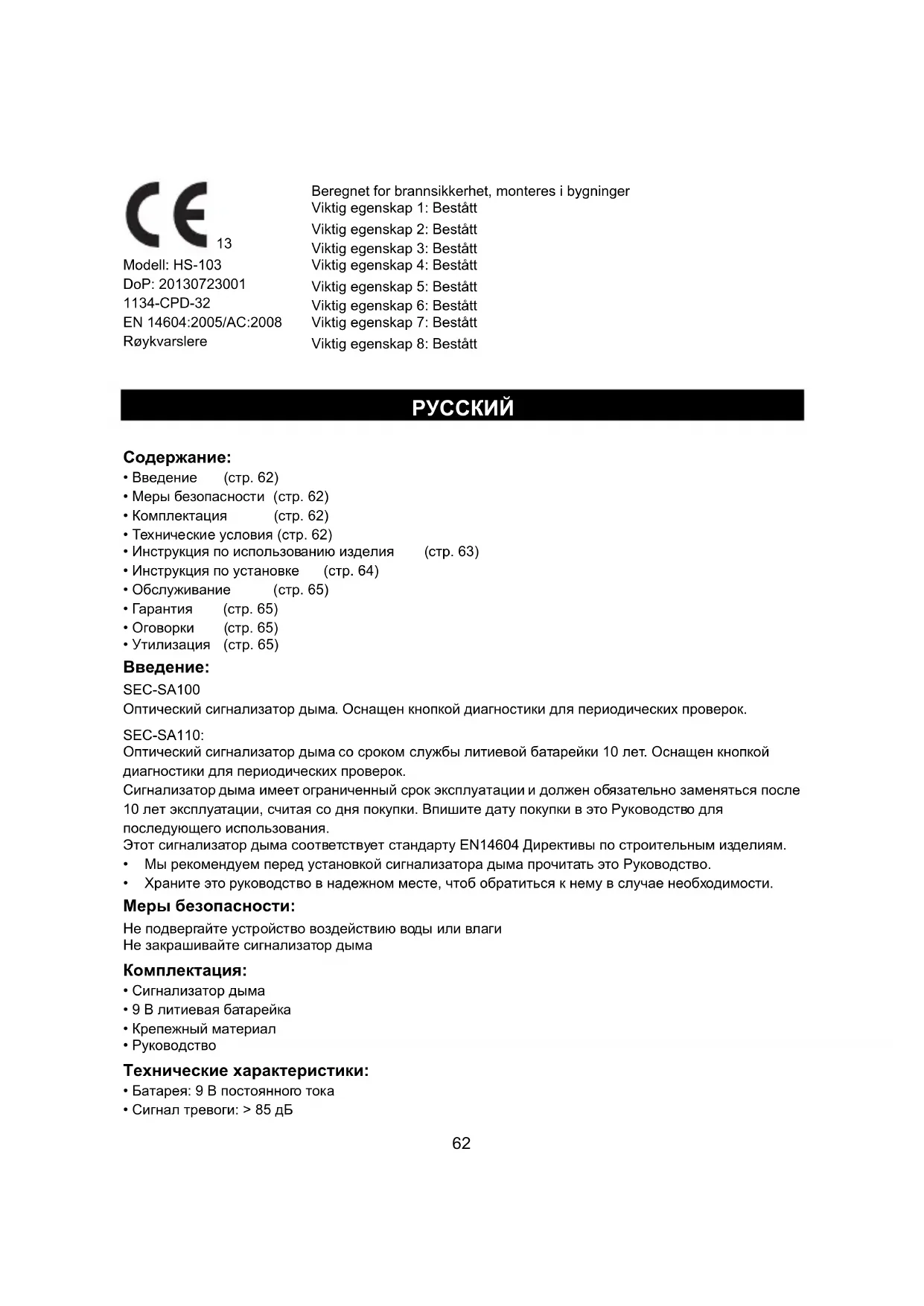 Этот сигнализатор дыма соответствует стандарту EN14604 Директивы по строительным изделиям.