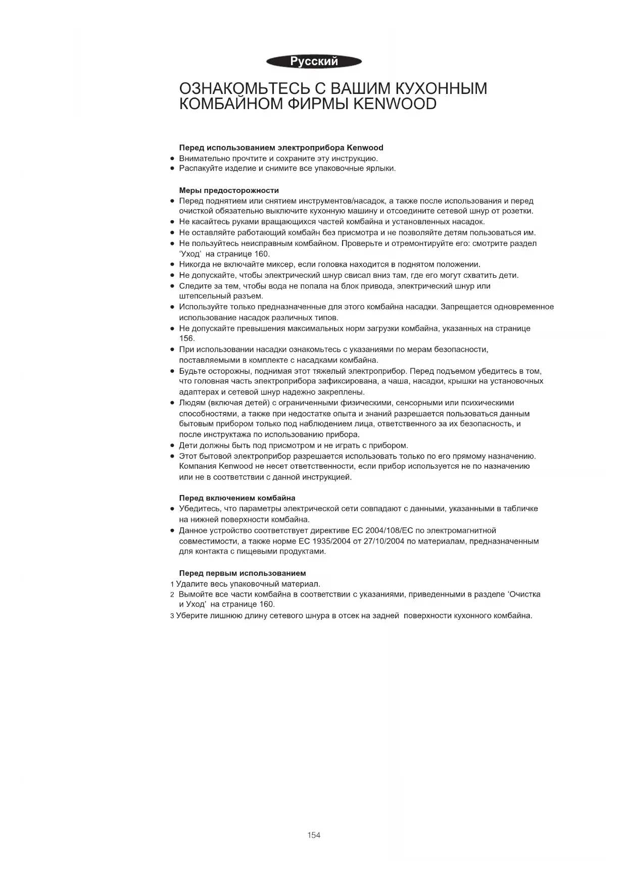 152153Перед использованием электроприбора Kenwood