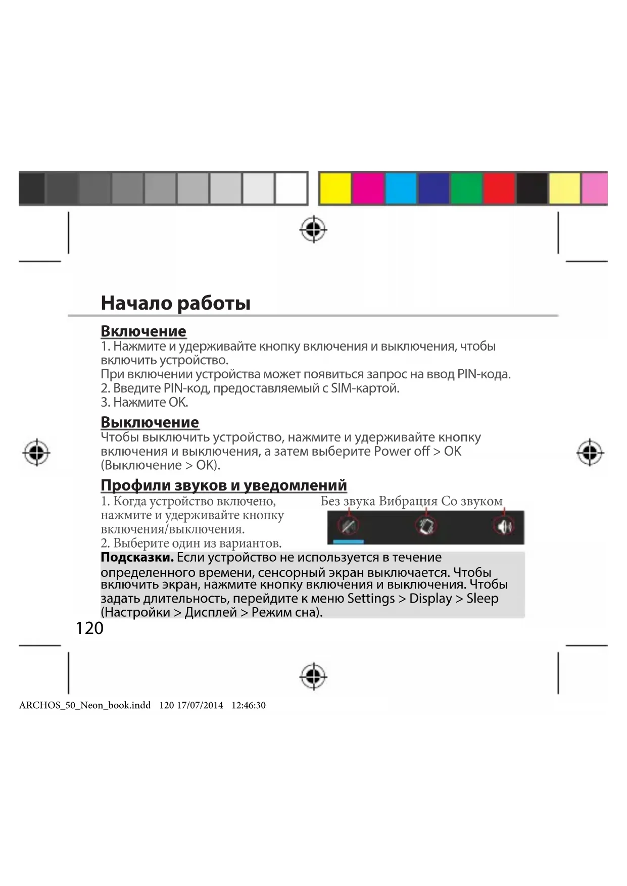 Подсказки. Если устройство не используется в течение