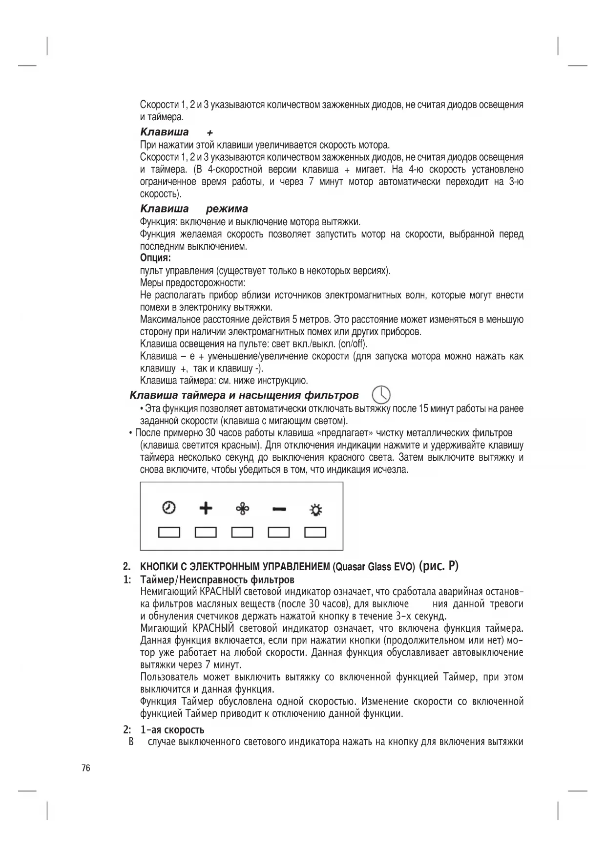 случае выключенного светового индикатора нажать на кнопку для включения вытяжки77