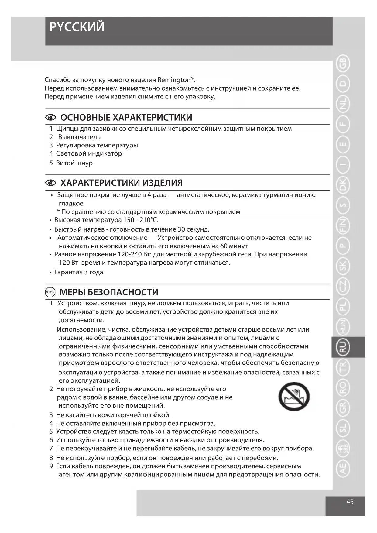 Спасибо за покупку нового изделия Remington®.