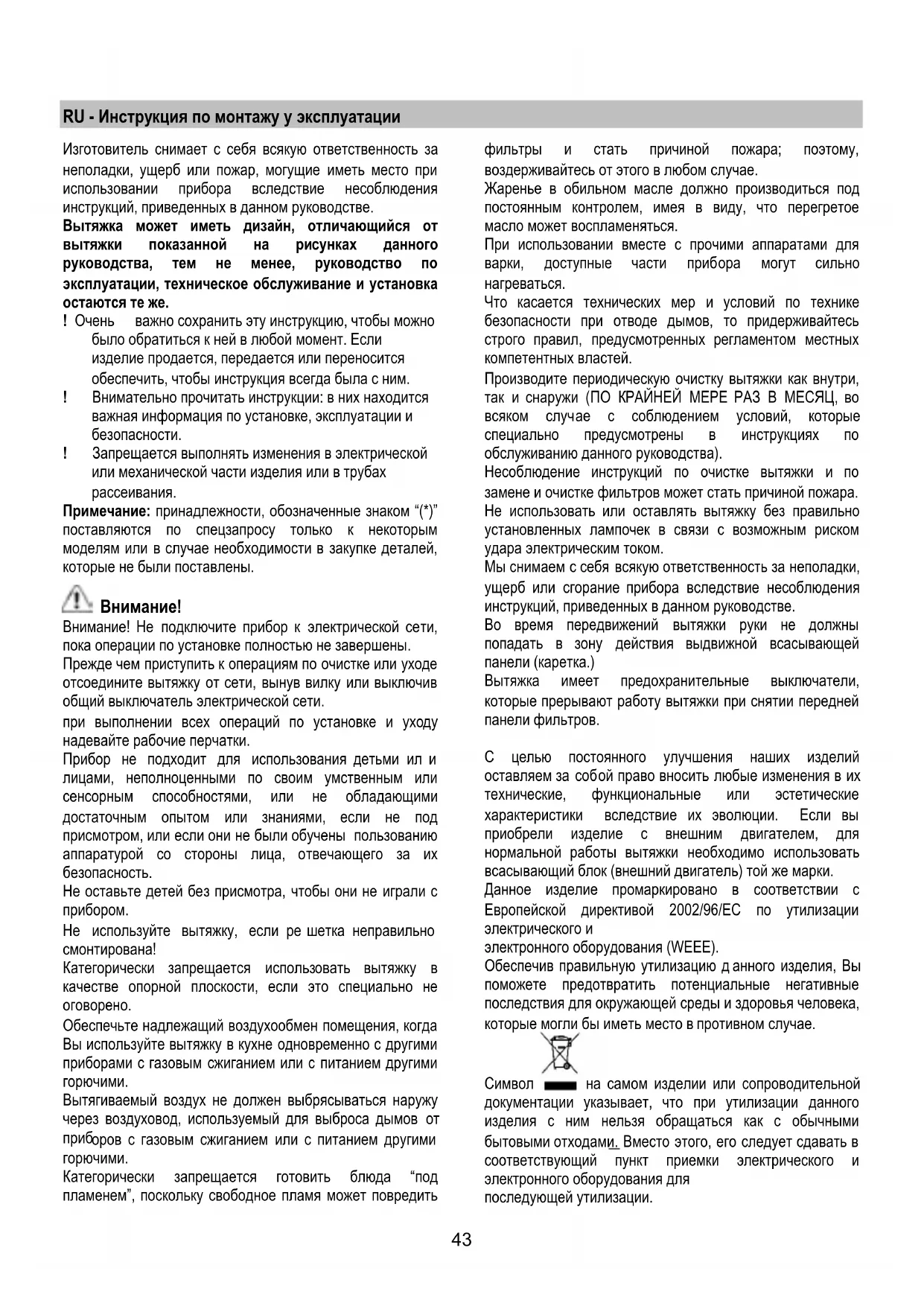 RU Инструкции по монтажу и эксплуатации