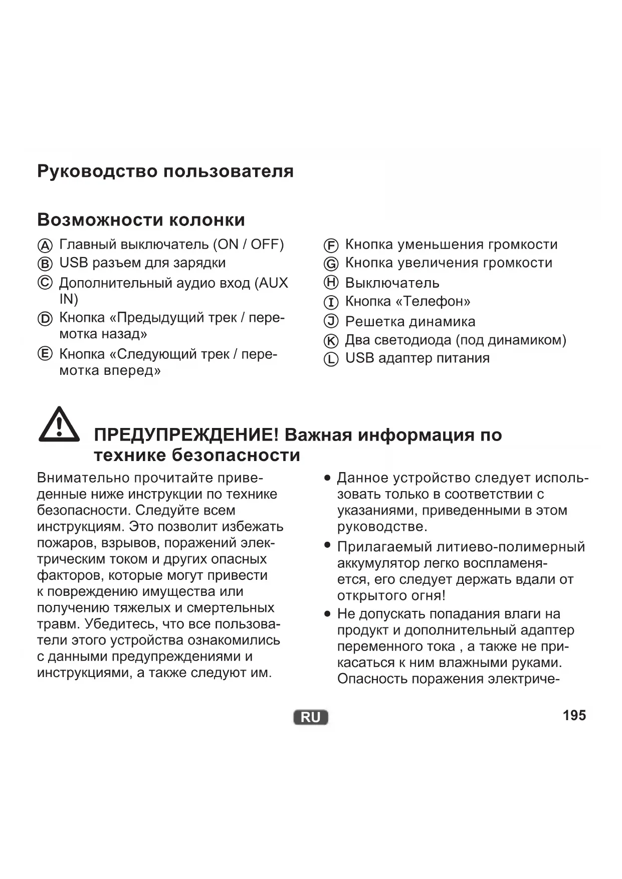 Руководство пользователя Возможности колонки