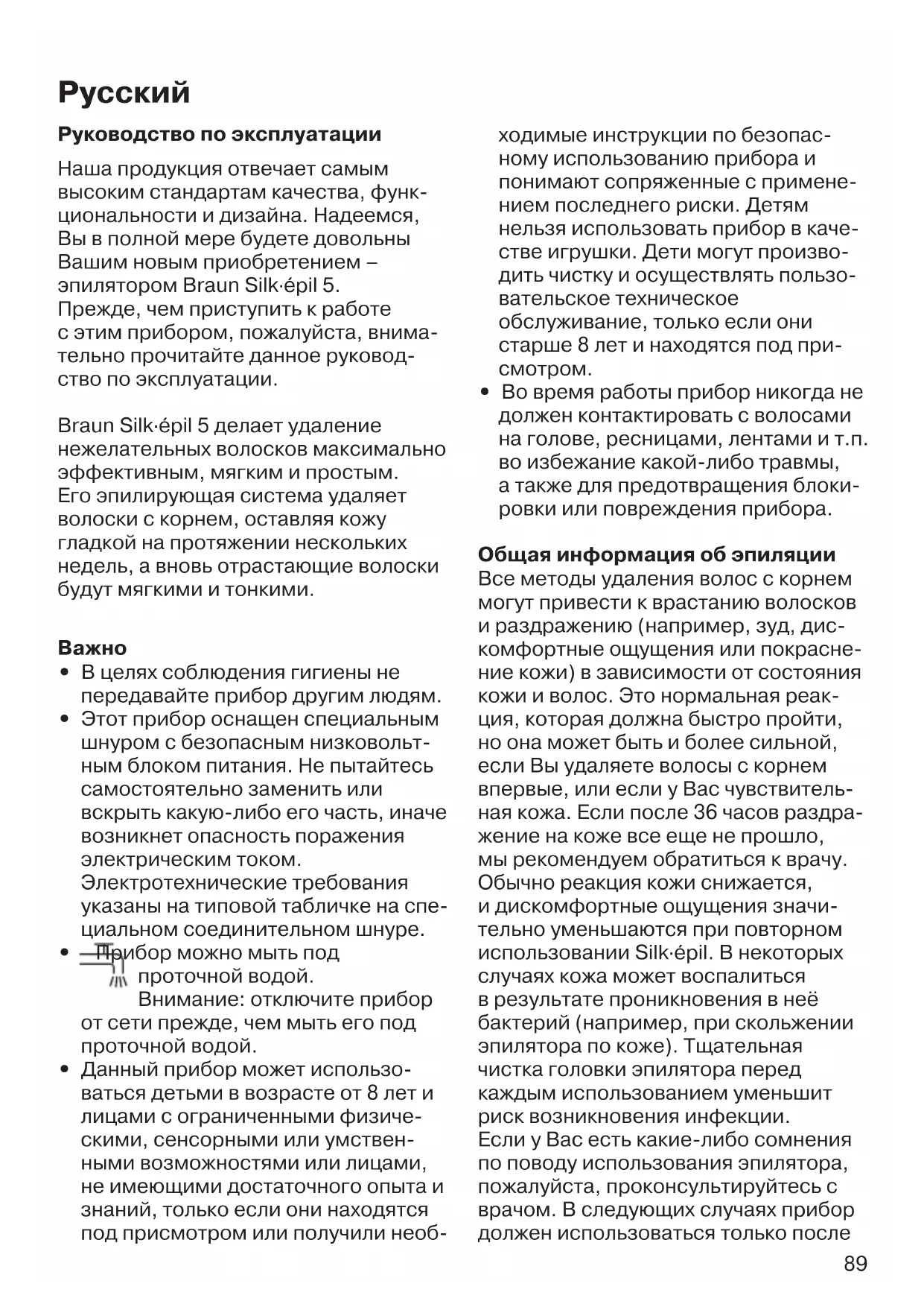 РУКОВОДСТВО ПОЛЬЗОВАТЕЛЯ Silkepil 5 5780 BRAUN