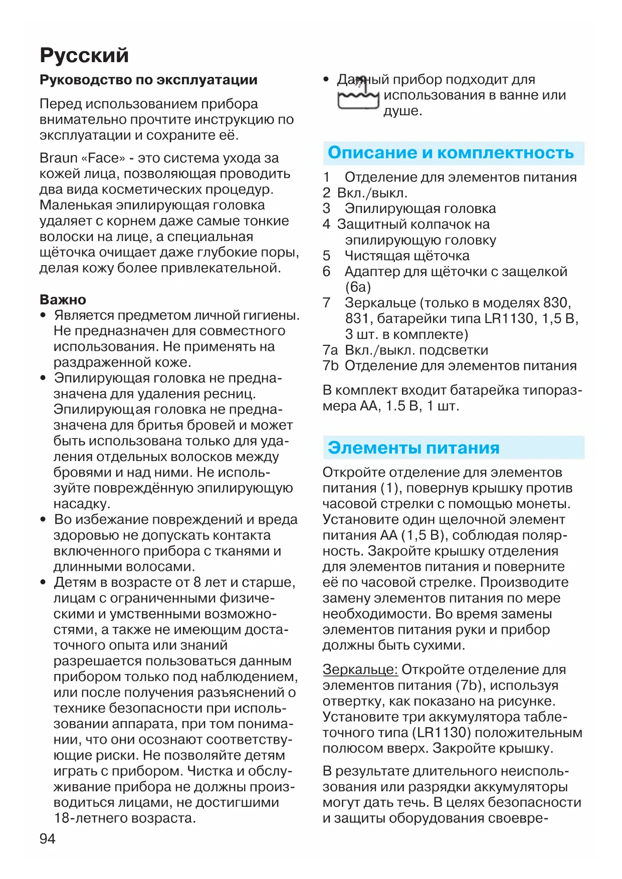 РУКОВОДСТВО ПОЛЬЗОВАТЕЛЯ SE831 Face BRAUN