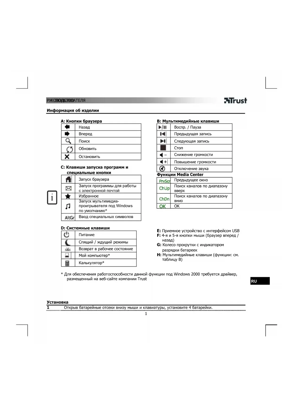 - Для обеспечения работоспособности данной функции под Windows 2000 требуется драйвер, размещенный на веб-сайте компании Trust