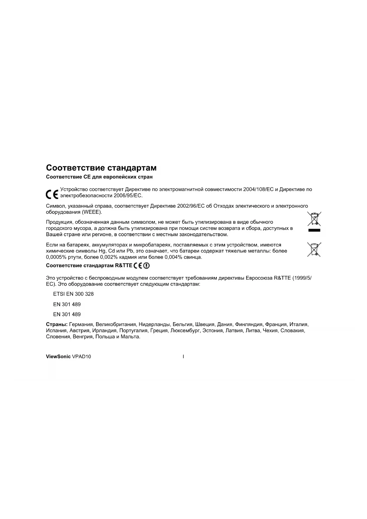 10. Данный планшетный ПК не должен утилизовываться вместе с обычным городским мусором, а только