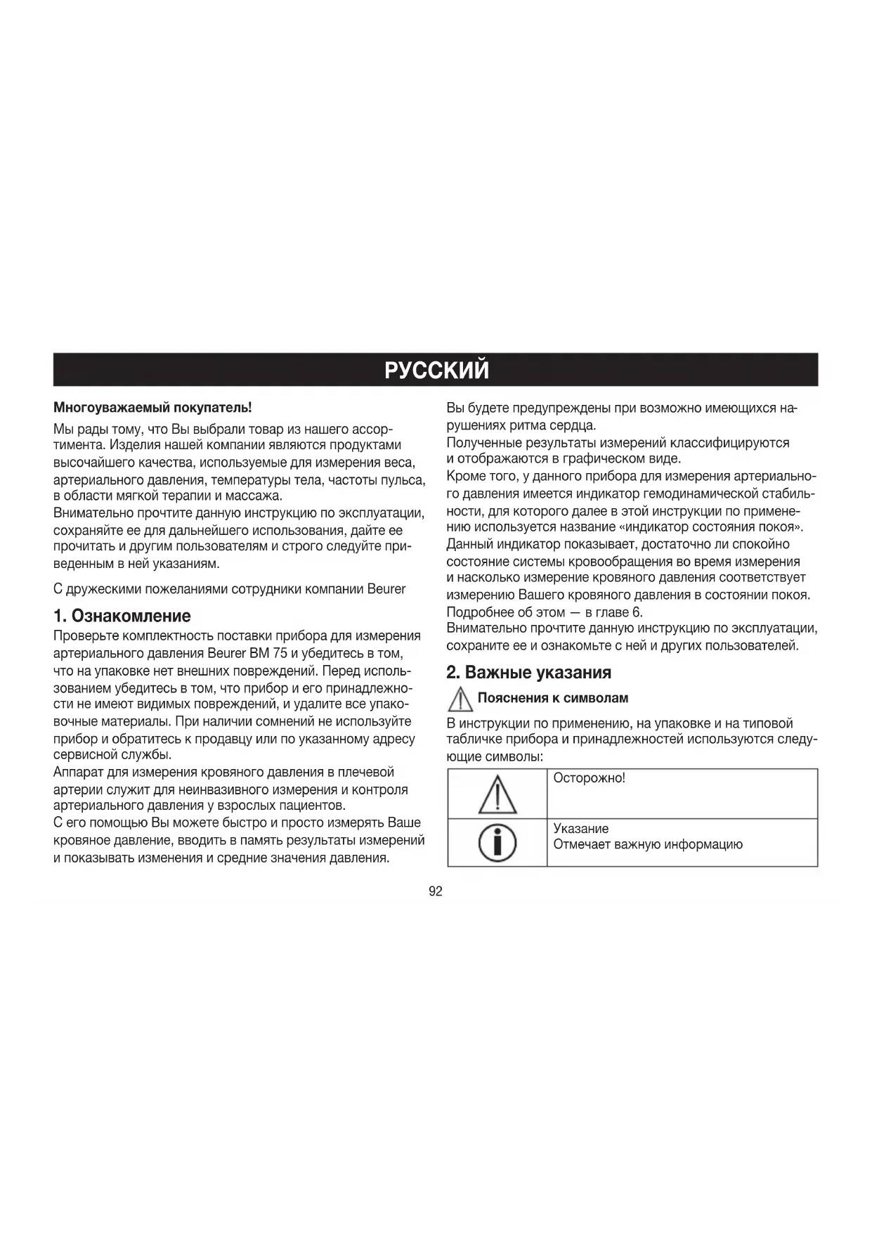 РУКОВОДСТВО ПОЛЬЗОВАТЕЛЯ BM 75 BEURER
