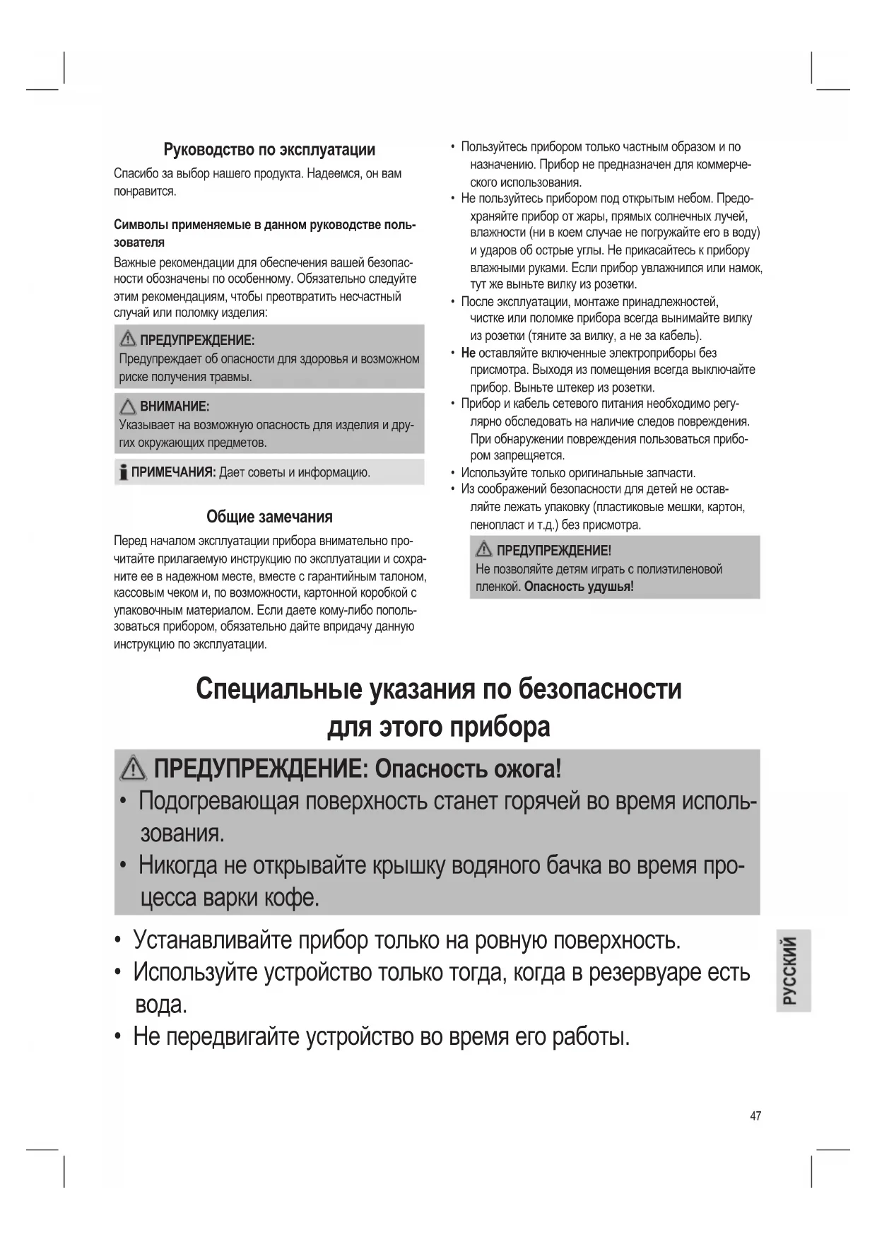 • Ни в коем случае не ремонтируйте прибор самостоятельно, а