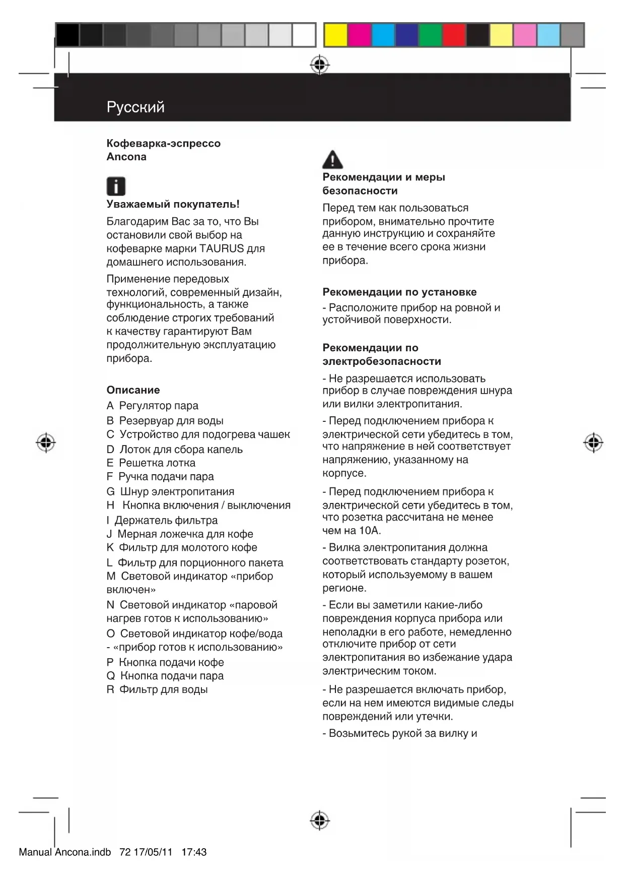 Ancona - Кофемашина TAURUS - Бесплатное руководство пользователя