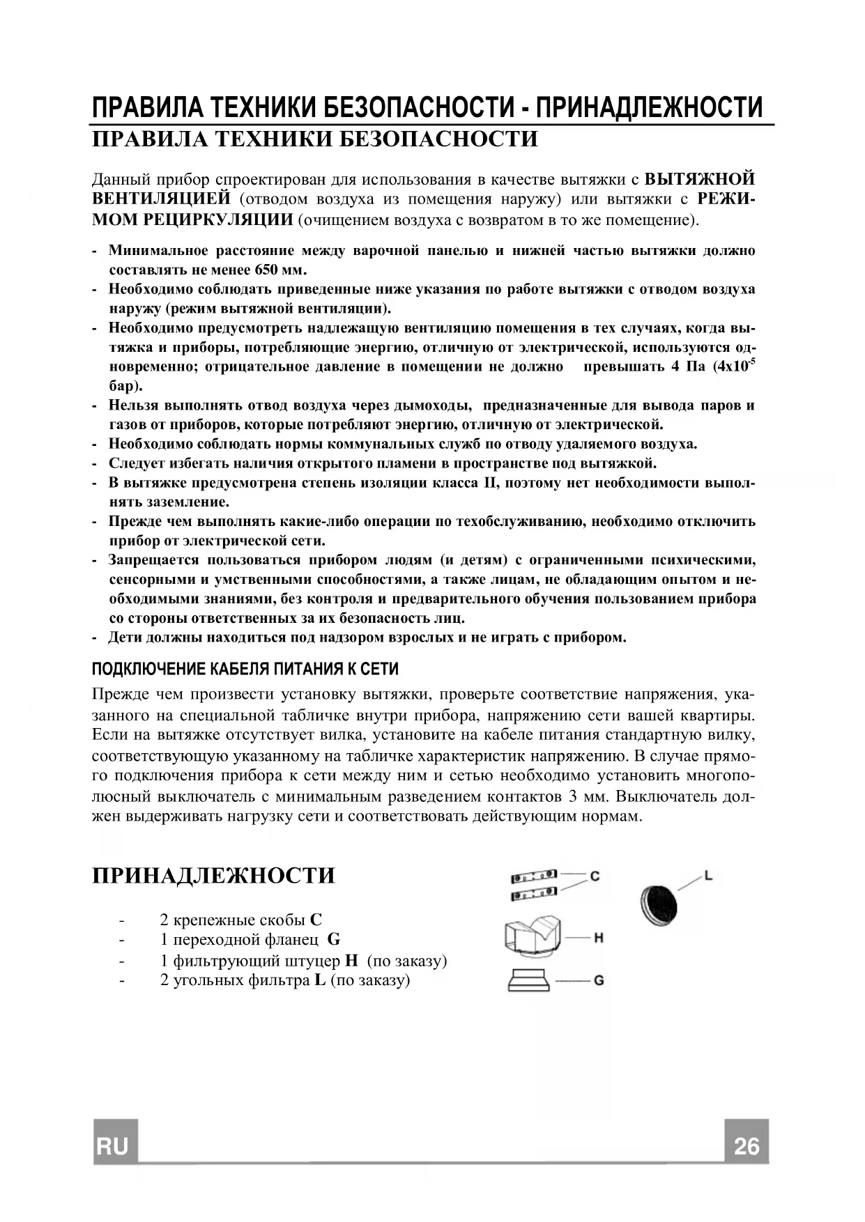 - В вытяжке предусмотрена степень изоляции класса II, поэтому нет необходимости выпол-