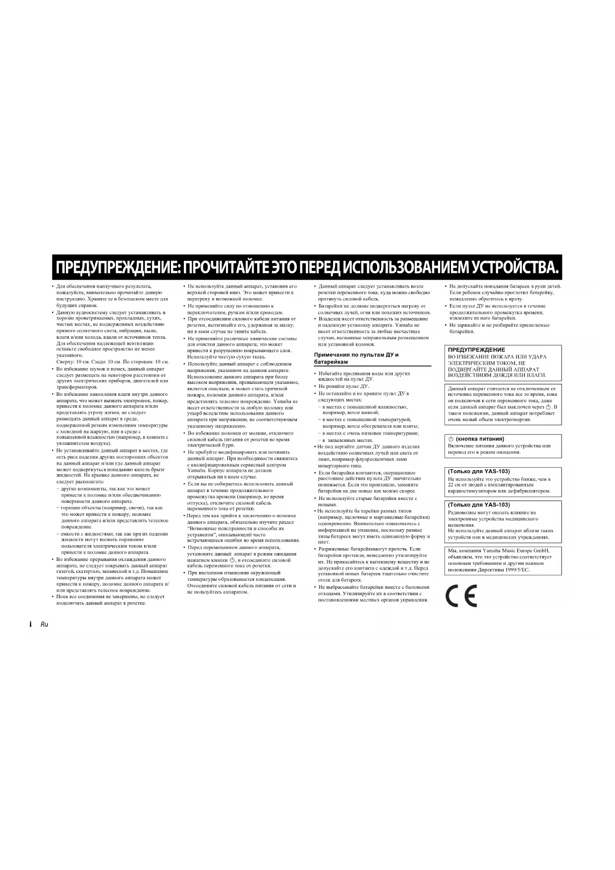РУКОВОДСТВО ПОЛЬЗОВАТЕЛЯ YAS93 YAMAHA