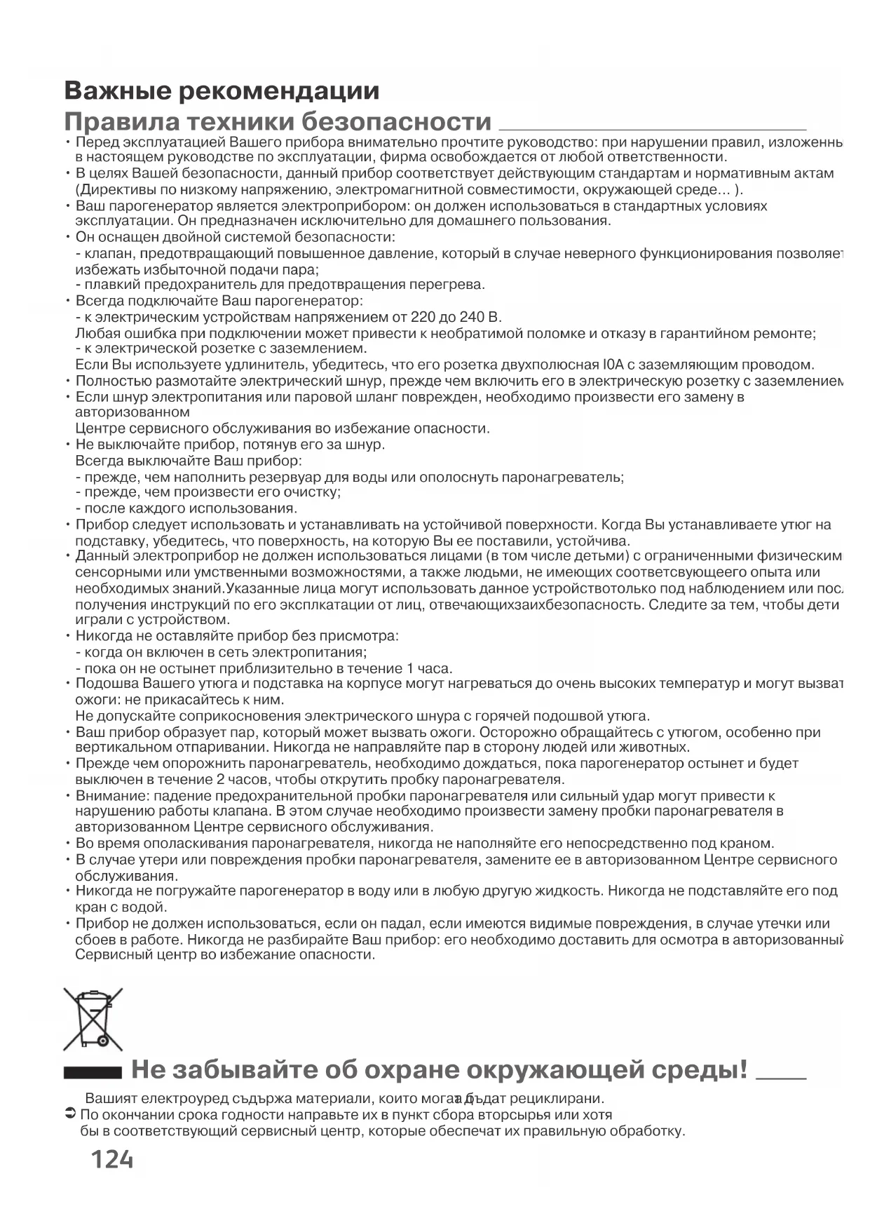 • Ваш парогенератор является электроприбором: он должен использоваться в стандартных условиях