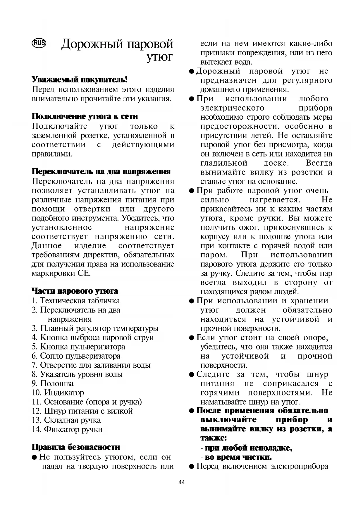 ● Дорожный паровой утюг не