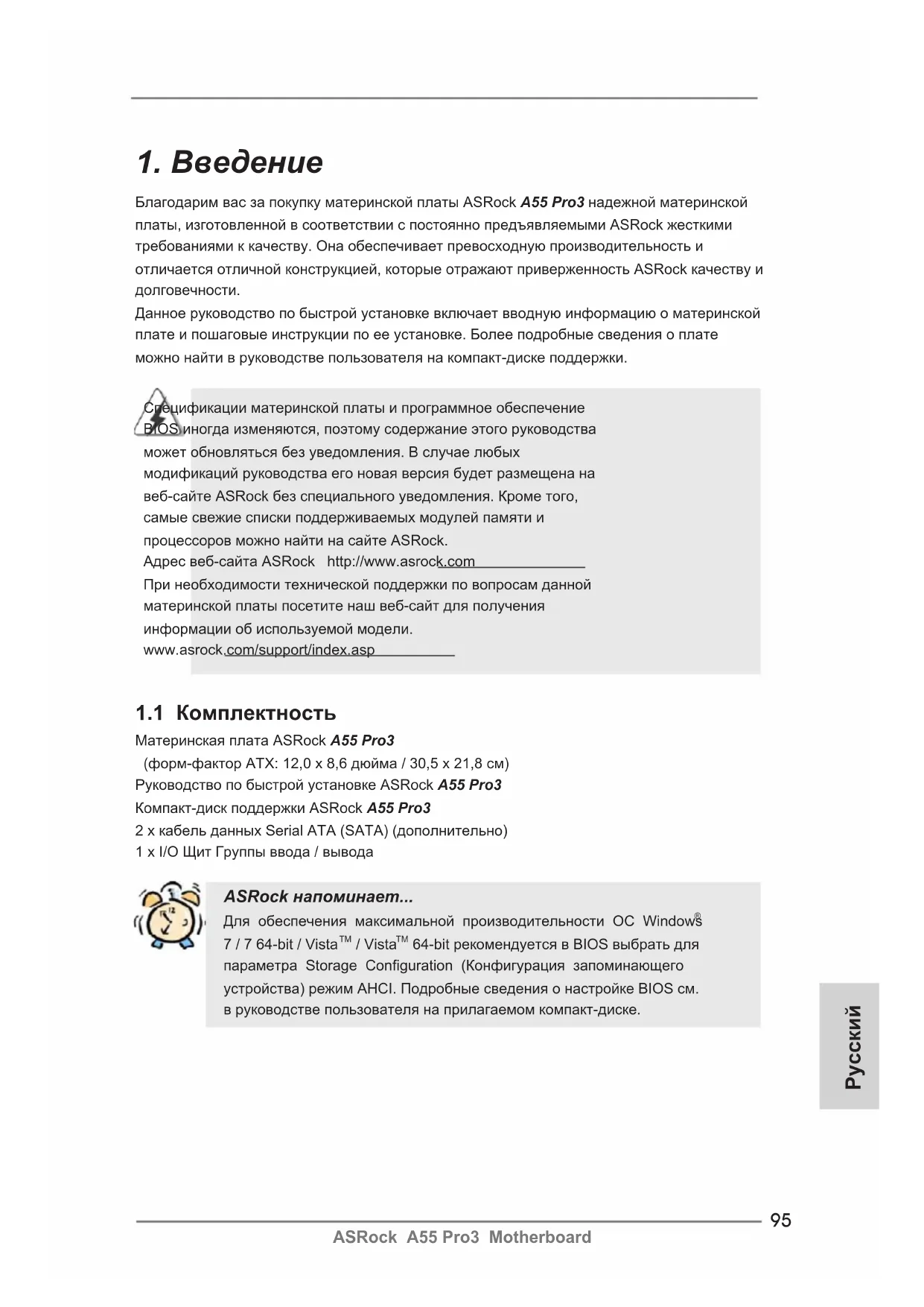 РУКОВОДСТВО ПОЛЬЗОВАТЕЛЯ A55 Pro3 ASROCK