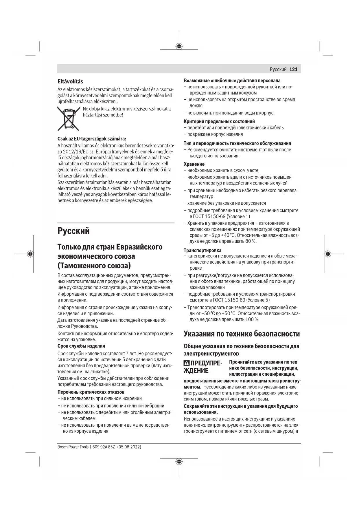 троинструмент с питанием от сети (с сетевым шнуром) и Bosch Power Tools 1 609 92A 85Z | (05.08.2022)122 | Русский