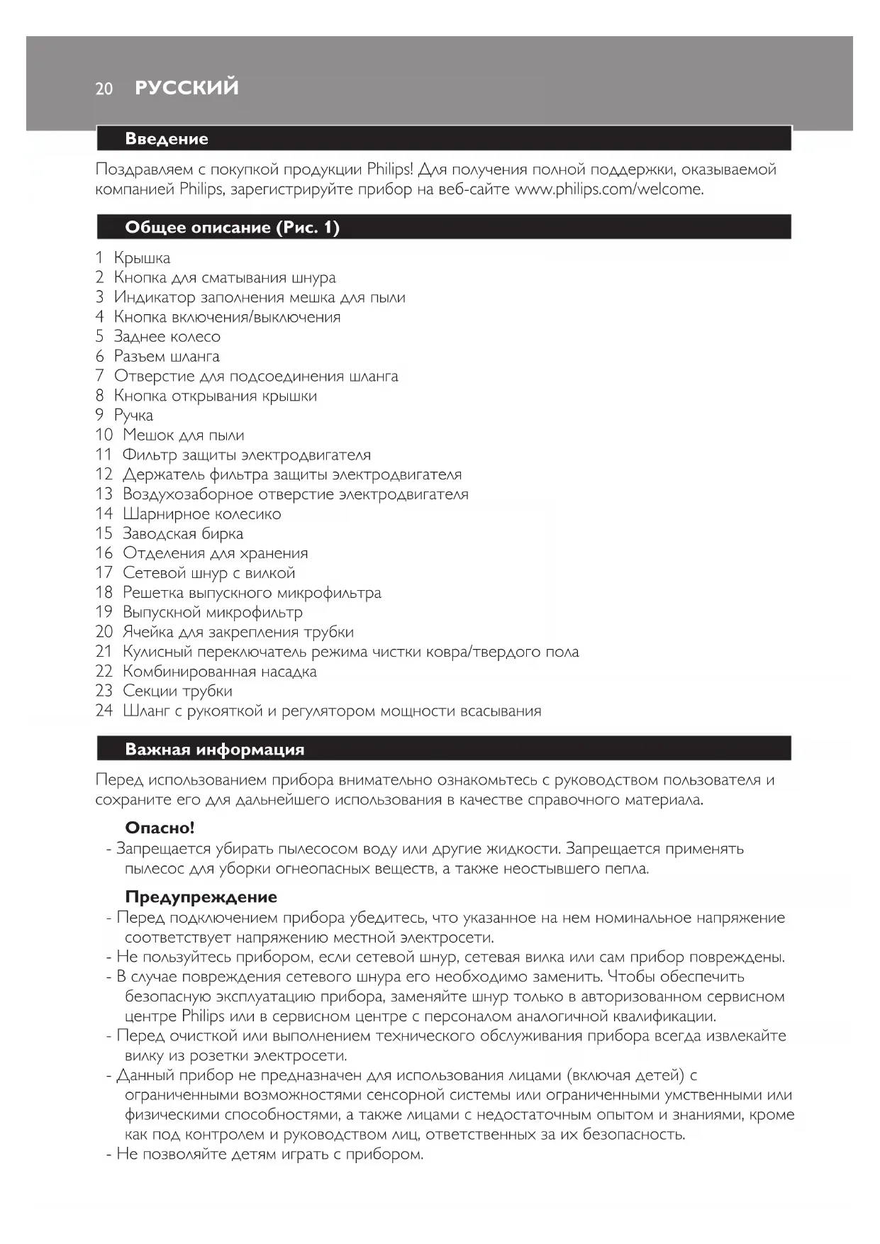 компанией Philips, зарегистрируйте прибор на веб-сайте www.philips.com/welcome.