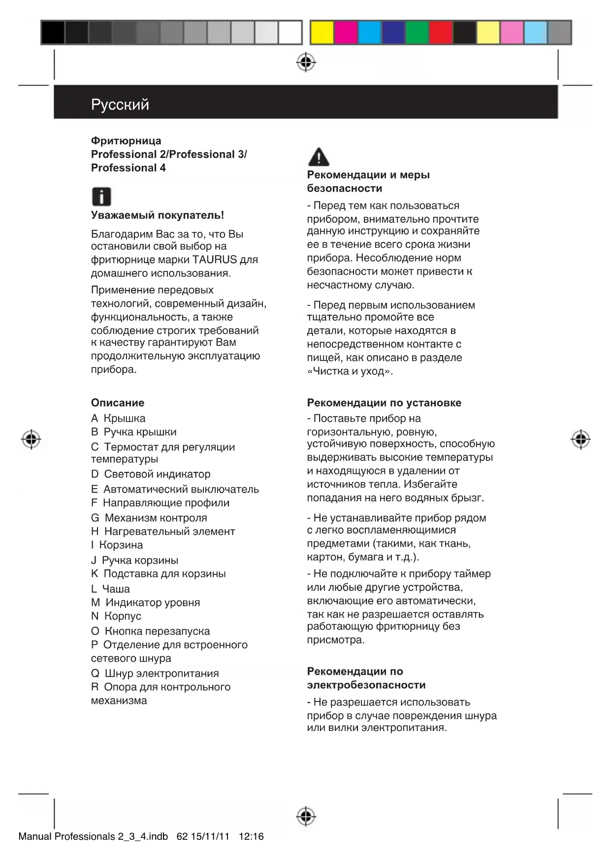РУКОВОДСТВО ПОЛЬЗОВАТЕЛЯ Professional 4L TAURUS