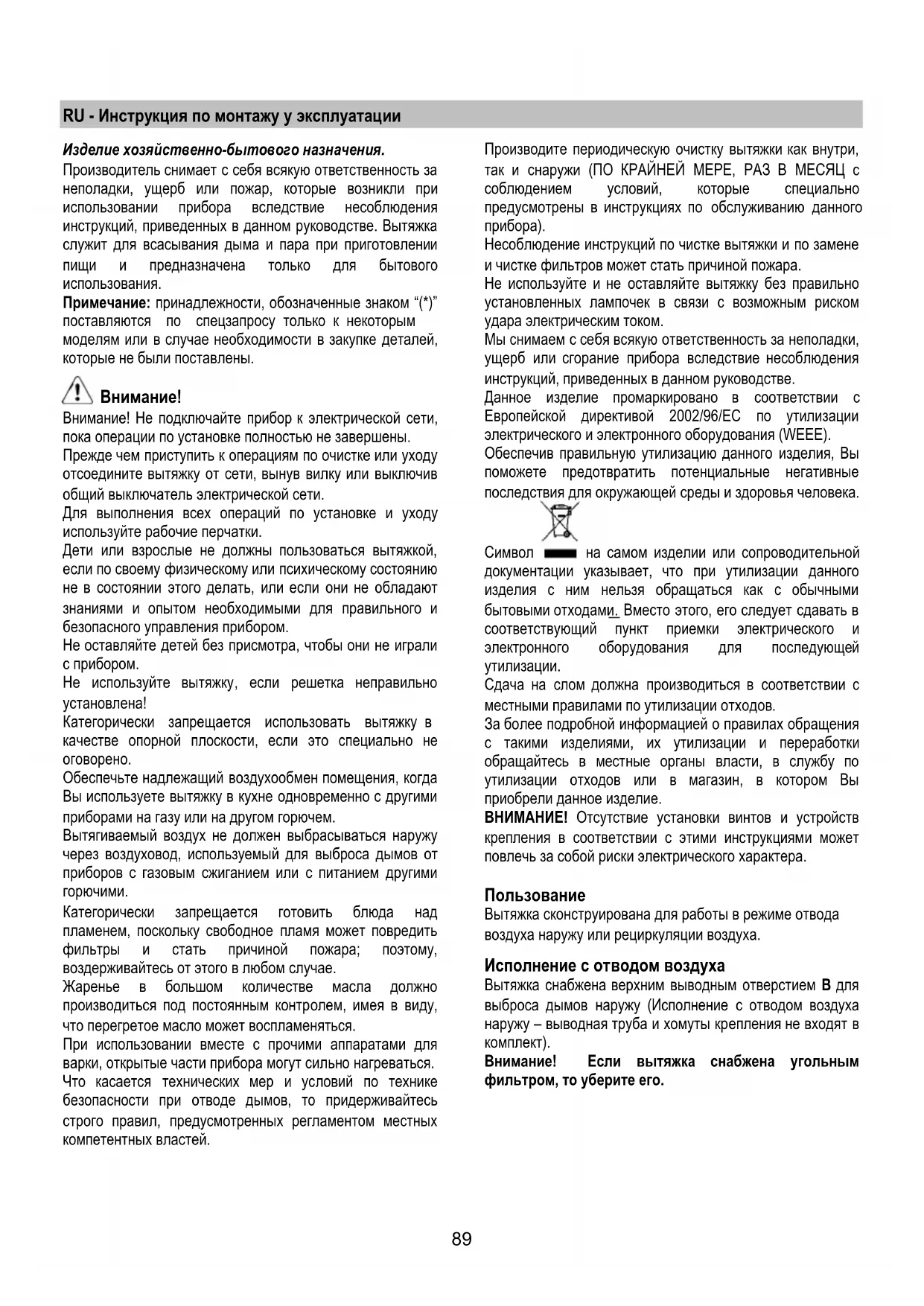 Скачайте инструкцию для вашего кухонная вытяжка в формате PDF бесплатно! Найдите своё руководство SPACE EDS DIGITAL R BLA78 - ELICA и возьмите своё электронное устройство обратно в руки. На этой странице опубликованы все документы, необходимые для использования вашего устройства. SPACE EDS DIGITAL R BLA78 бренда ELICA.