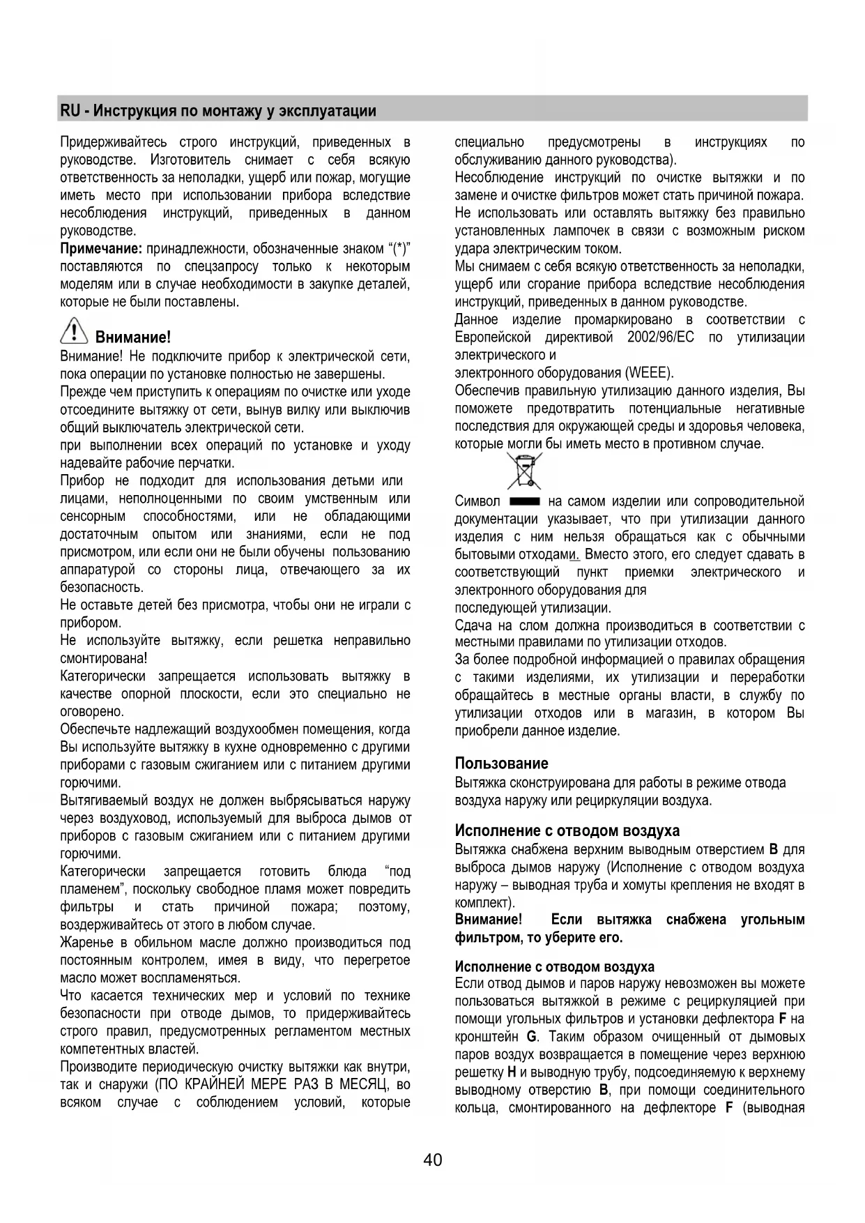 Скачайте инструкцию для вашего кухонная вытяжка в формате PDF бесплатно! Найдите своё руководство SPACE EDS DIGITAL R WHA78 - ELICA и возьмите своё электронное устройство обратно в руки. На этой странице опубликованы все документы, необходимые для использования вашего устройства. SPACE EDS DIGITAL R WHA78 бренда ELICA.