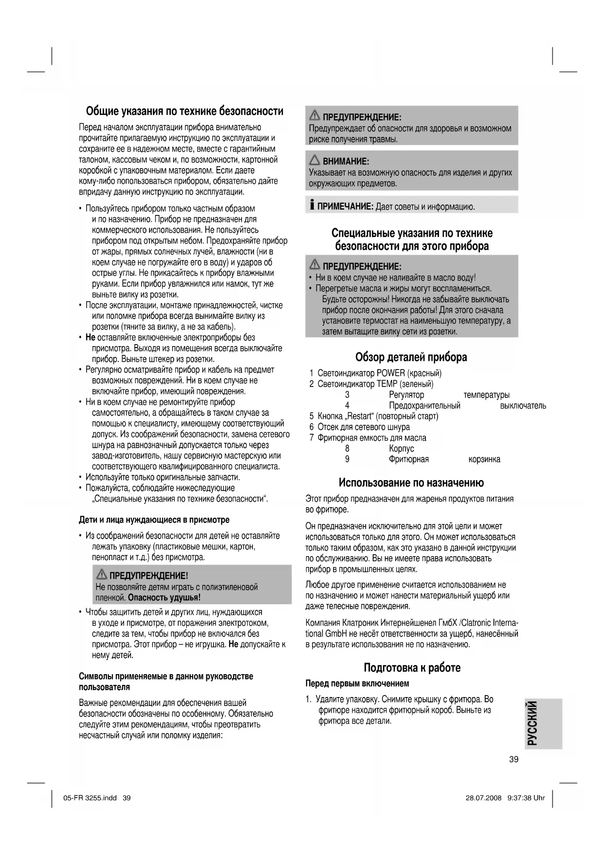 Скачайте инструкцию для вашего фритюрница в формате PDF бесплатно! Найдите своё руководство FR 3255 - CLATRONIC и возьмите своё электронное устройство обратно в руки. На этой странице опубликованы все документы, необходимые для использования вашего устройства. FR 3255 бренда CLATRONIC.