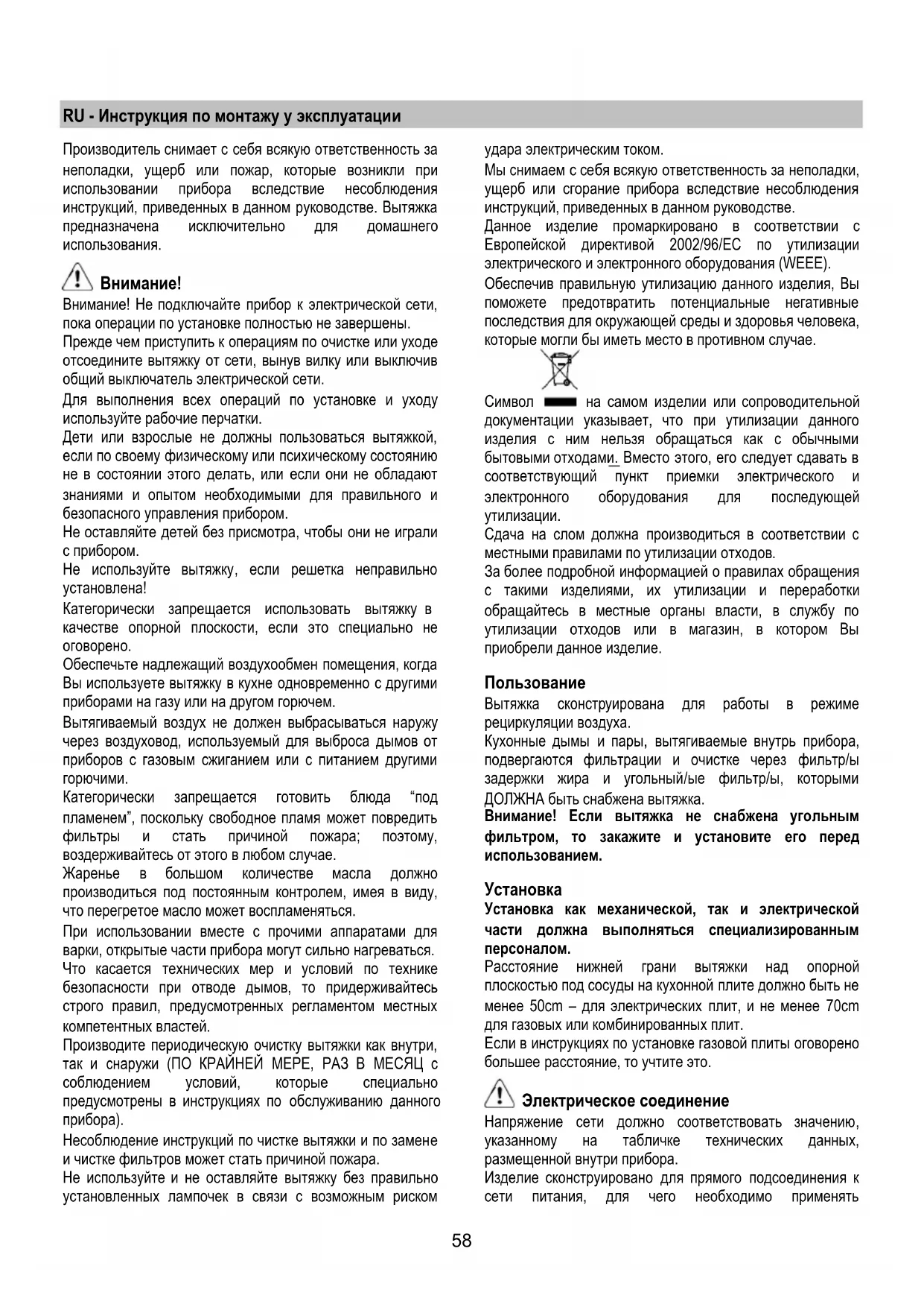 отсоедините вытяжку от сети, вынув вилку или выключив