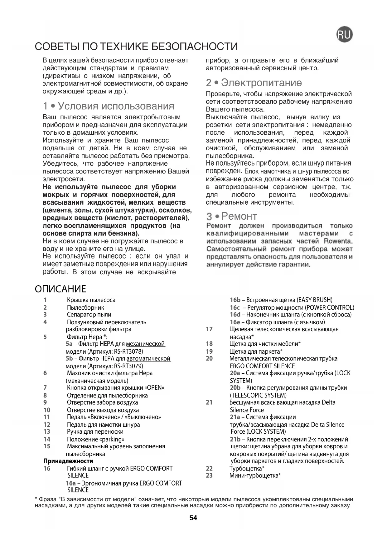 РУКОВОДСТВО ПОЛЬЗОВАТЕЛЯ Silence Force Cyclonic RO8055 ROWENTA